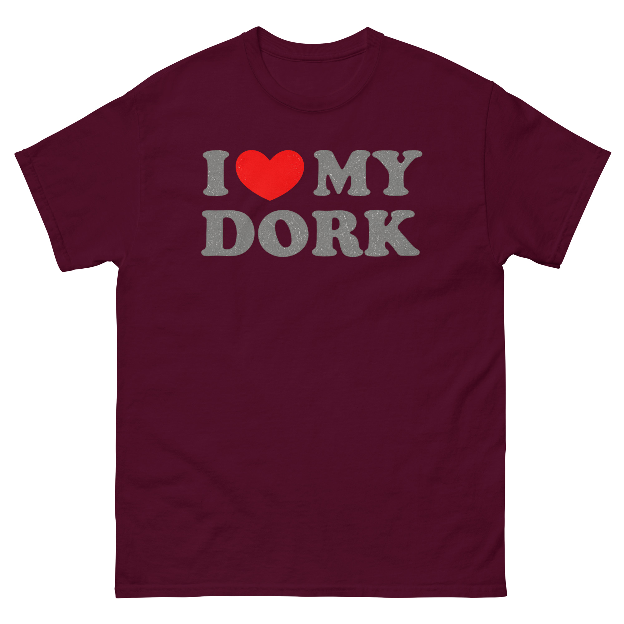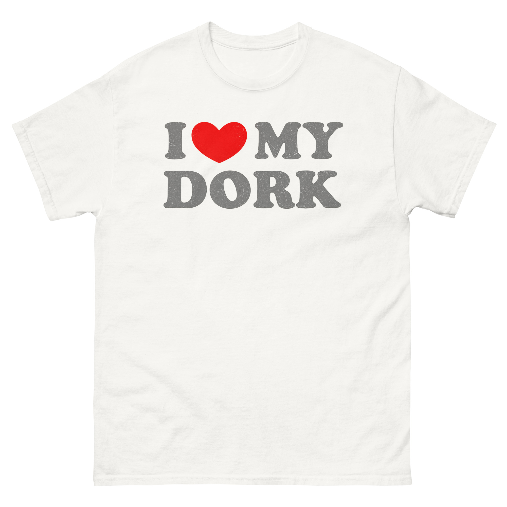 We created this tee for the real, beautifully awkward moments that make a relationship uniquely yours. Instead of a generic “I Love You,” it shouts “I Love My Dork” with a charming, distressed vintage style that feels like a beloved, well-worn memory.