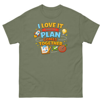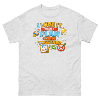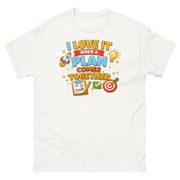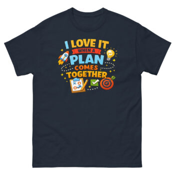 That moment when the spreadsheet aligns, the team syncs up, and your strategy clicks into place, it’s pure magic. Our I Love It When A Plan Comes Together Shirt is a vibrant tribute to that sweet, sweet satisfaction. More than just an 80s TV show quote, this design transforms Hannibal Smith’s classic catchphrase into a modern ode to strategic optimism and execution. For project managers, Dungeon Masters, teachers, and anyone who lives for the thrill of a successful mission, this tee combines premium quality with a goal-setting aesthetic you can wear with pride.