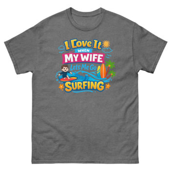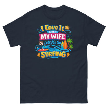Ever felt that pure, unadulterated joy when the forecast calls for a perfect swell and you get the green light from your better half to hit the waves? That specific, hilarious feeling of “The Endless Summer (With Permission)” is exactly what we’ve captured in our standout I Love It When My Wife Lets Me Go Surfing Shirt. This isn’t just another graphic tee. Instead, it’s a celebration of beach life, marriage humor, and the simple privilege of catching a big wave. Crafted for surfer husbands: A vibrant, comfortable statement piece.
