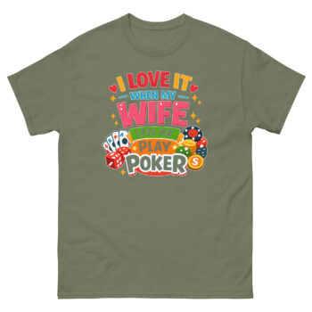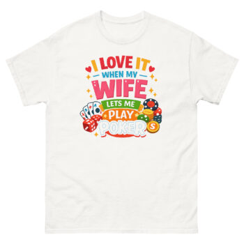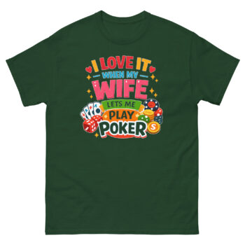 Every poker player knows the feeling: the anticipation of a casino night, the clink of poker chips, and the strategic thrill of the game. But the real win? Securing the spousal hall pass. Our I Love It When My Wife Lets Me Play Poker Shirt celebrates this universal marriage humor with a vibrant, cartoonish design that’s a sure bet for laughs. More than just funny poker shirts for men, this tee is a wearable token of table banter and grateful negotiation. For the Texas Hold’em enthusiast, the Las Vegas dreamer, and the supportive partner, this shirt combines premium comfort with a hand everyone at the table will appreciate.