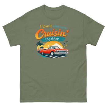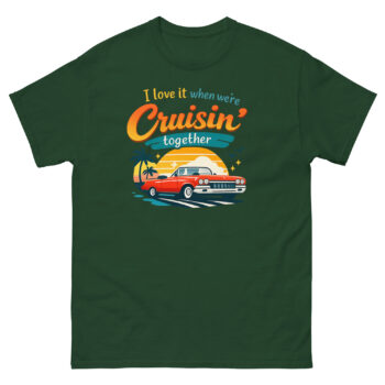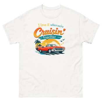 Don’t just buy a t-shirt, invest in a feeling. Click ‘Add to Cart’ and make this essential piece of nostalgic romance and road trip style your own. Get Your I Love It When We’re Cruisin Together Shirt Today. The Cool Gift for Couples, Travelers, and Lovers of Vintage Vibe.