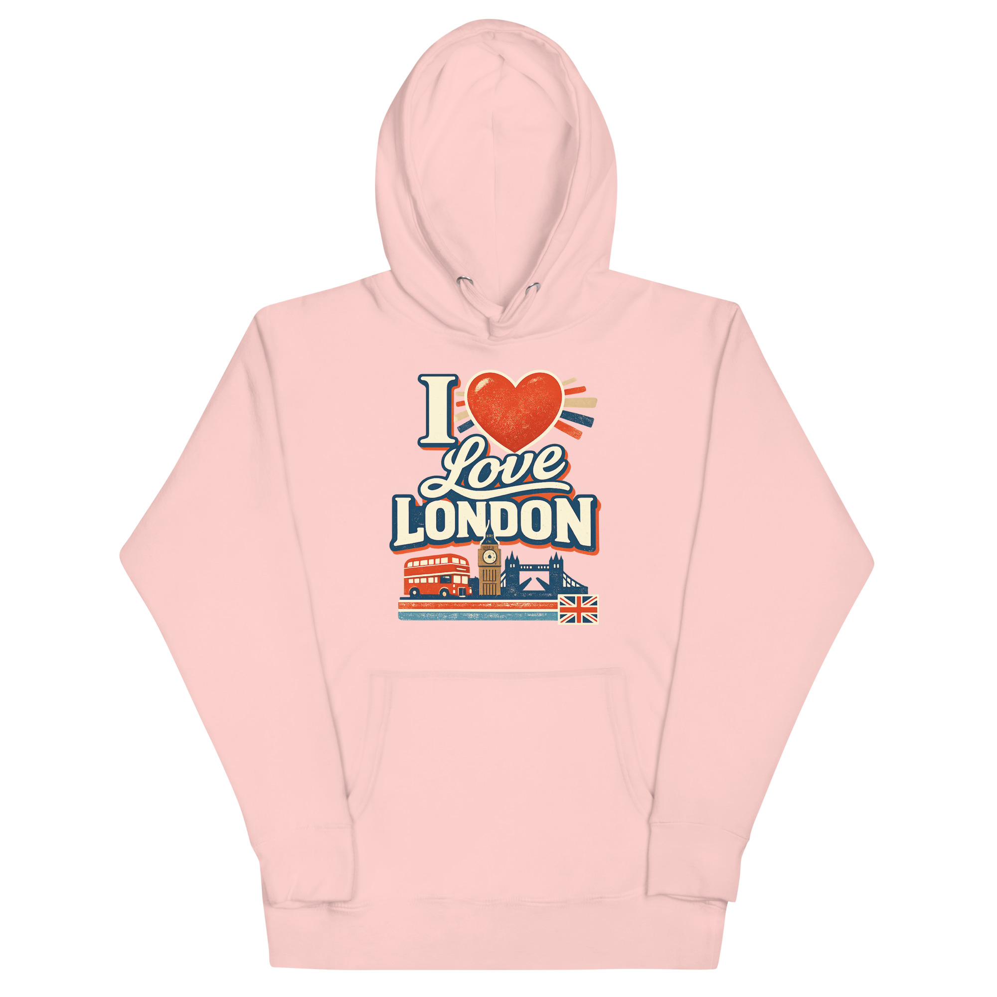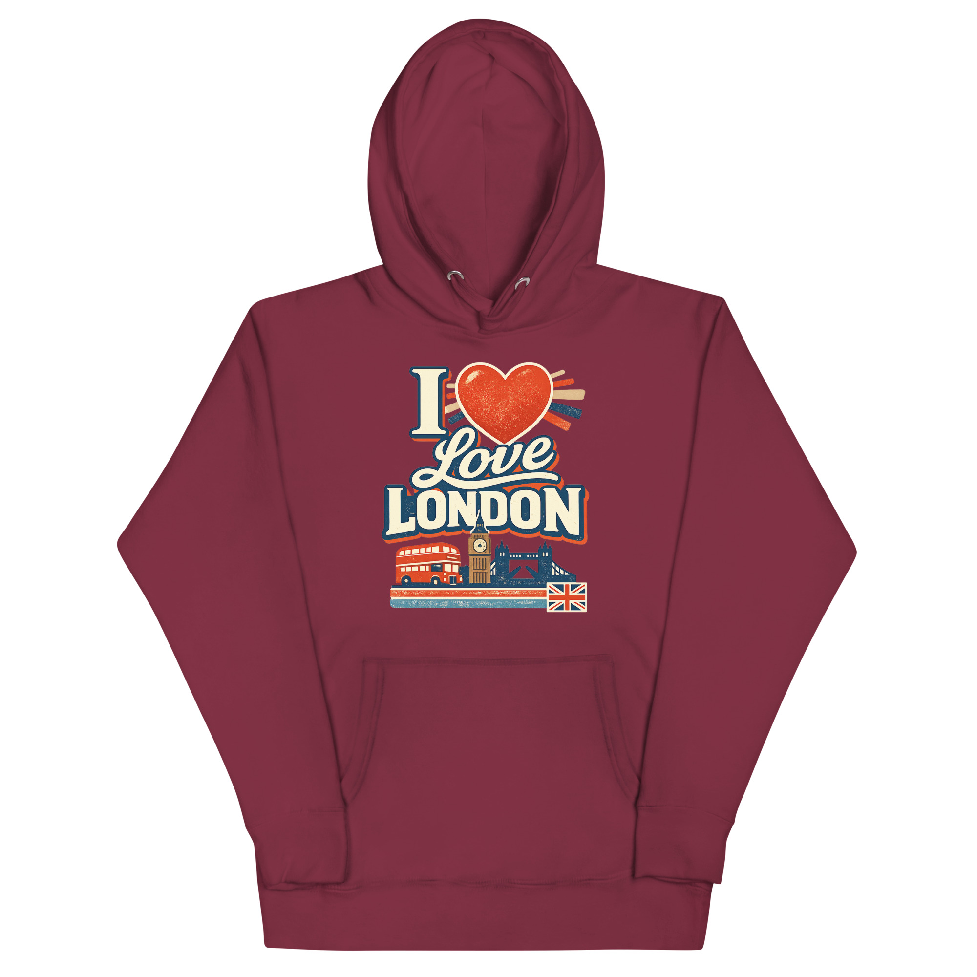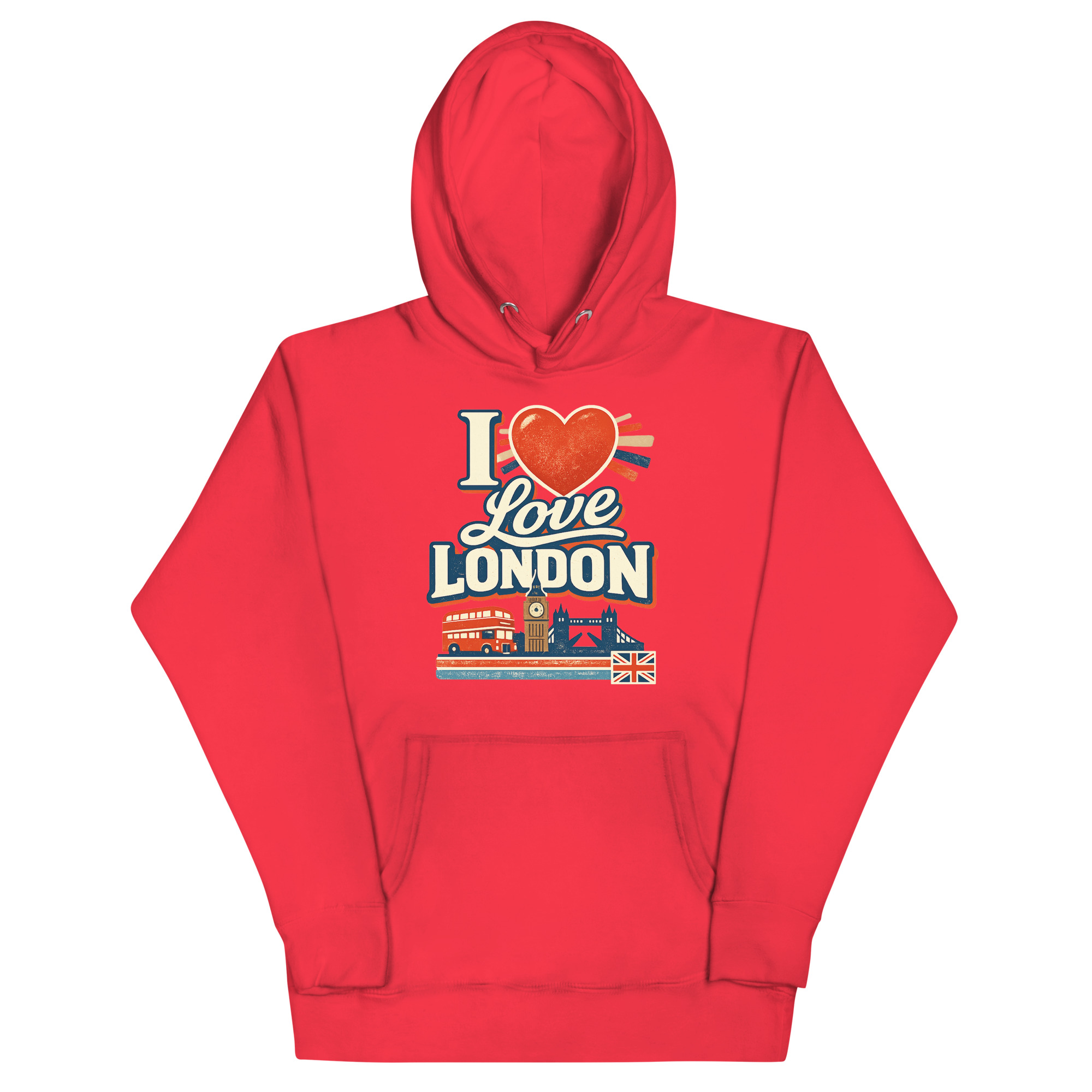 The I Love London hoodie is a classic unisex pullover designed for travelers, London fans, and anyone who loves iconic city style. Featuring a vibrant DTG print of London’s landmarks, this hoodie blends comfort with cultural pride. It’s perfect for casual wear, sightseeing, or gifting to someone who adores the UK capital.