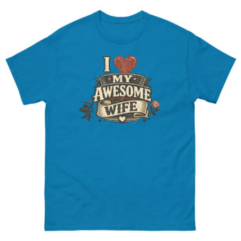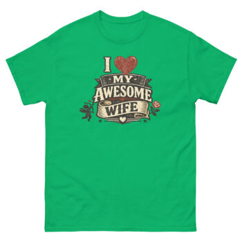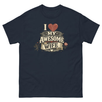 Ready to wear your pride? This I Love My Awesome Wife shirt is more than just apparel; it’s a conversation starter and a daily reminder of your awesome partnership. Whether you’re picking it as a retro-style Valentine’s Day shirt for yourself or as a unique marriage celebration gift from one husband to another, it’s designed to be cherished. Click ‘Add to Cart’ to get your vintage crest tee today, a simple, powerful way to show the world what she means to you.