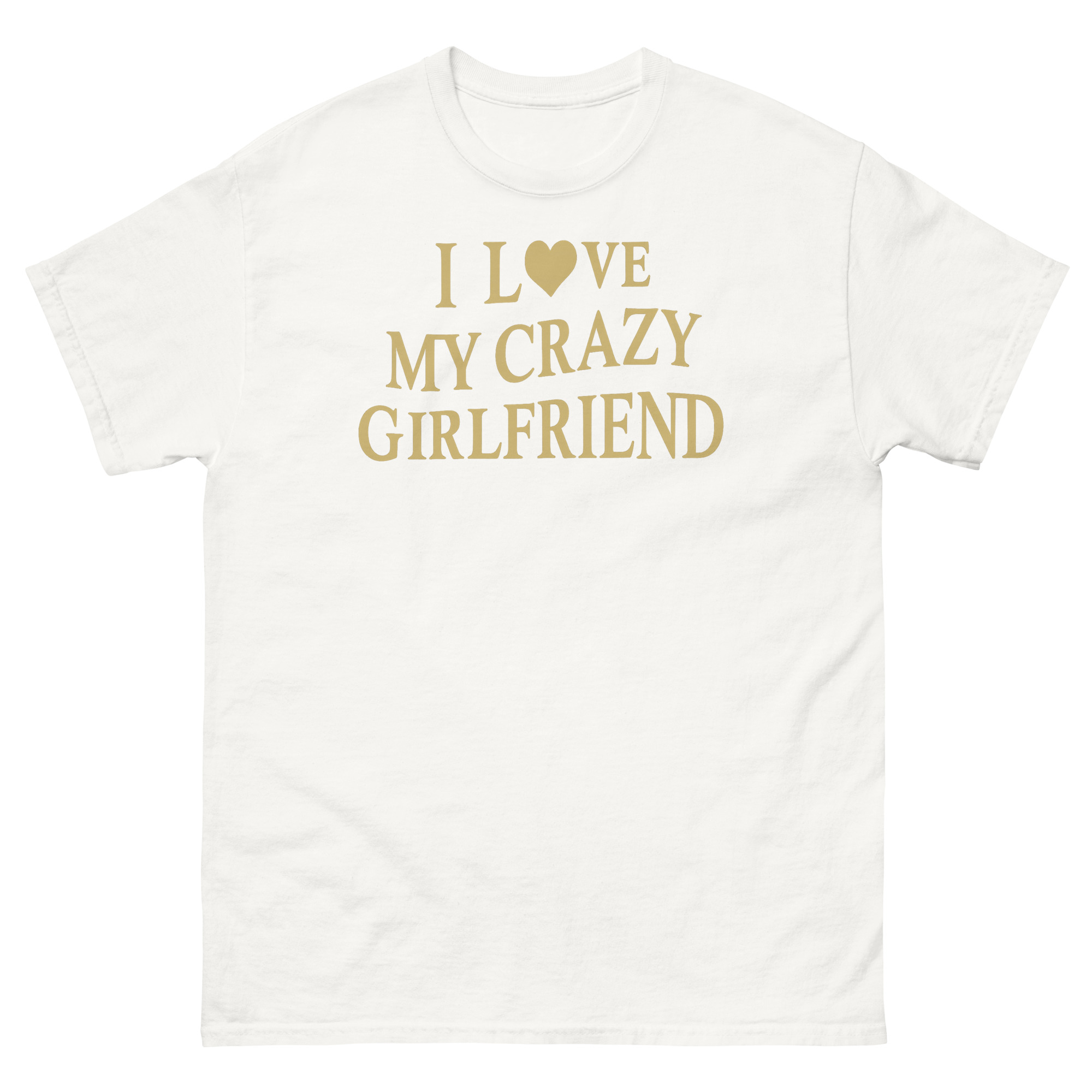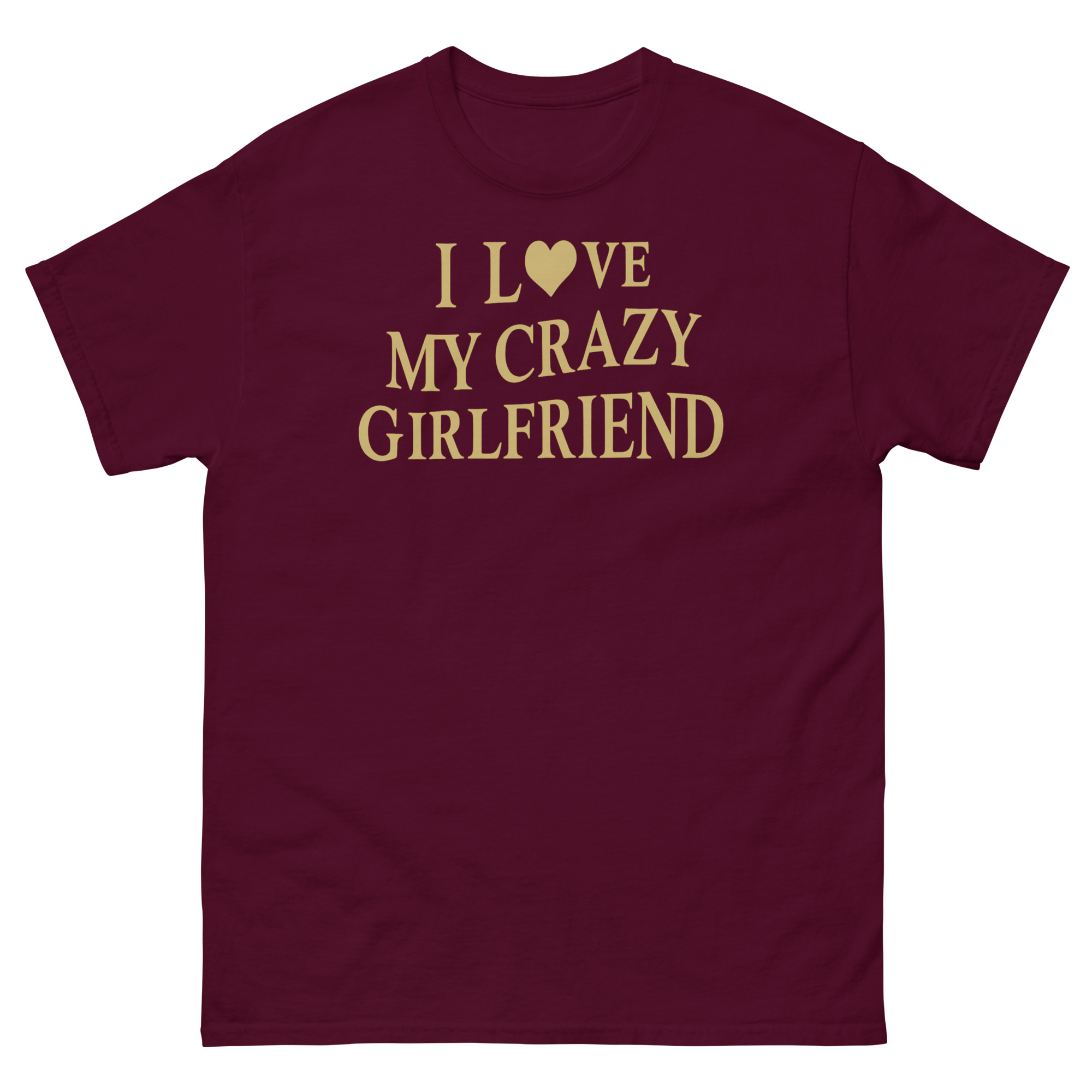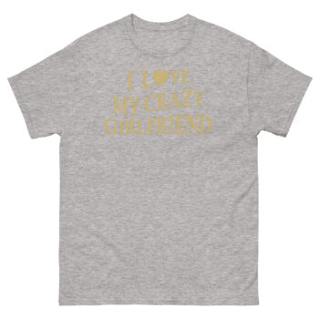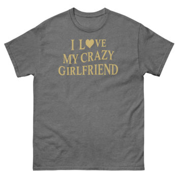 By using a classic, collegiate-style font and a premium metallic gold print, we give the joke a layer of sophistication. It looks like a vintage trophy or an official seal, which makes the funny message even sharper. This I Love My Crazy Girlfriend Shirt is perfect as a funny anniversary gift for him or as one of those relationship joke shirts for boyfriends of feisty girls. It’s for the guy who gets a laugh when his partner steals his hoodie, who enjoys the dynamic energy of his relationship, and who isn’t afraid to wear that truth comfortably. Whether it’s a casual date night or a weekend hangout with friends who get the joke, this shirt adds a layer of personality to any laid-back outfit.