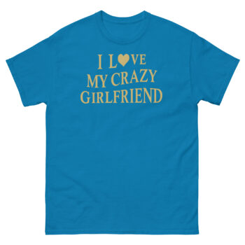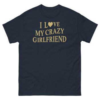This I Love My Crazy Girlfriend Shirt is a witty graphic tee for guys who appreciate sarcastic humor in their relationships. Its unique style comes from pairing a bold, old-school statement with a surprisingly elegant gold print, standing out from typical joke shirts. Ultimately, it’s designed for boyfriends and husbands who are proudly committed and want a fun way to show it.