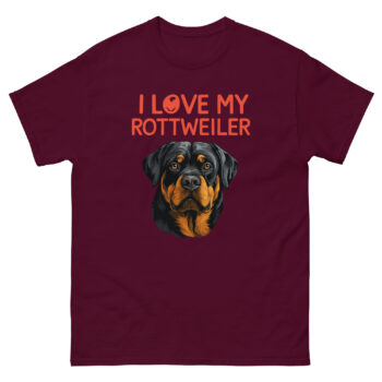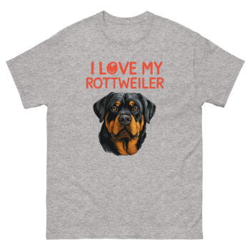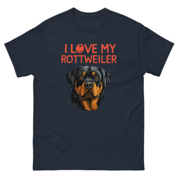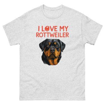 Why simply feel the love for your Rottweiler when you can wear it proudly for all to see? The I Love My Rottweiler T-Shirt is more than an item of clothing; it’s a statement of identity. It’s for the walks in the park, the lazy Sundays, and the moments you look at your loyal friend and feel overwhelming gratitude.