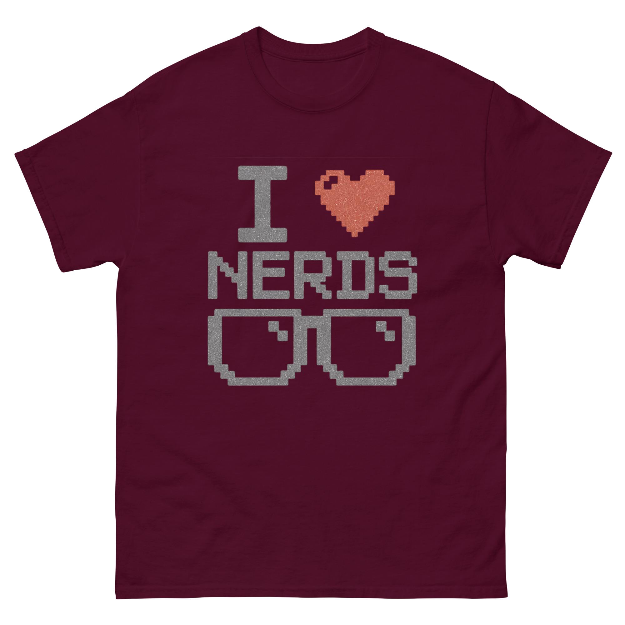 Press Start on Style: The I Love Nerds Shirt in Retro 8-Bit Pixel Art