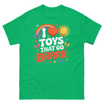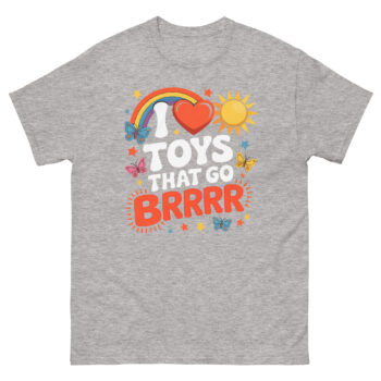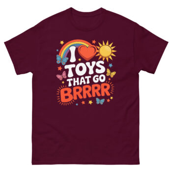 I Love Toys That Go Brrr T Shirt Constructed from 100% pre-shrunk cotton, this tee offers a soft, breathable feel right away. Additionally, the tubular build minimizes bulky side seams, which significantly enhances comfort for all-day wear. The classic fit is true-to-size, providing a relaxed silhouette that’s neither too tight nor too bagy. Whether you’re at a festival or a casual gathering, this shirt is designed for real comfort.