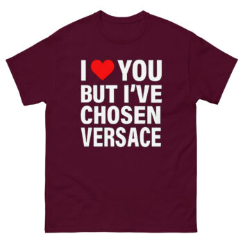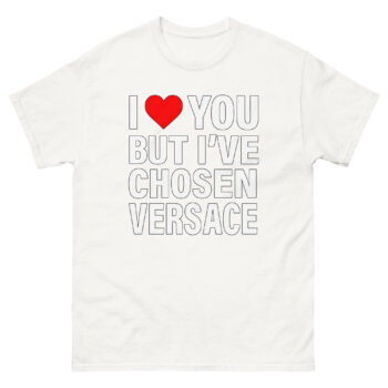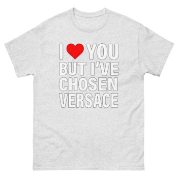 Let’s be real, sometimes, a great outfit feels more rewarding than a complicated relationship. If you believe that self-expression is the form of love, then this I Love You But I’ve Chosen Versace shirt is your new motto in cotton form. This clever piece of designer inspired quote shirt is for anyone who values their personal style. It’s a witty, empowering statement that turns fashion into a punchline.
