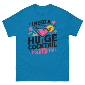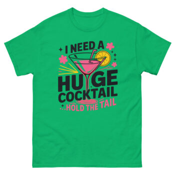 Ready to add some playful humor to your wardrobe? Grab your I Need A Huge Cocktail T Shirt now. It’s the perfect top for turning any outing into a more memorable event. Click ‘Add to Cart’ to get yours today and be the life of the party.