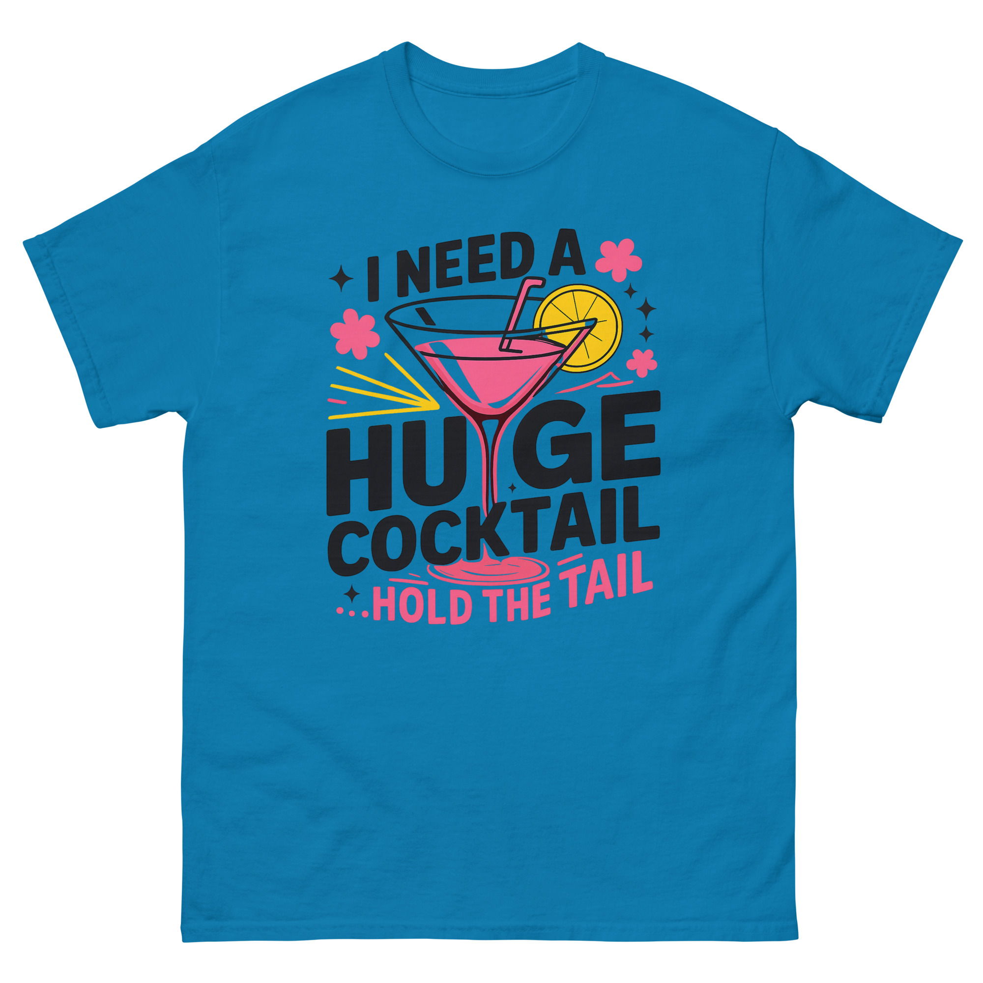 I Need A Huge Cocktail T Shirt offers a true-to-size classic fit that’s both comfortable and flattering. The pre-shrunk cotton is soft from the first wear and maintains its shape wash after wash. It’s the perfect balance of a clean look for the graphic and all-day comfort for your adventures.