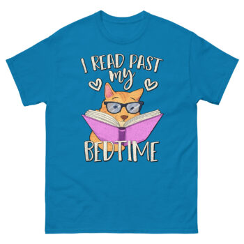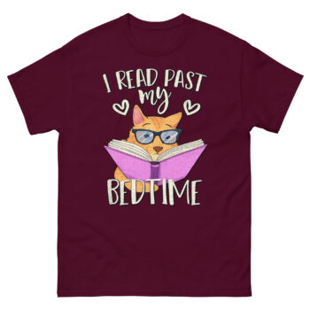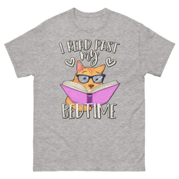 I Read Past My Bedtime T Shirt design was inspired by the simple, universal truth that a good book is hard to put down. We wanted to capture that specific, cozy feeling of reading late into the night. The choice of a ginger cat wearing glasses adds a layer of whimsical personality; it represents curiosity and the quiet companionship of a reading nook. This isn’t just a statement, it’s a whimsical bibliophile night owl clothing item that feels like a shared secret among readers.