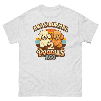 Ready to embrace your wonderful, poodle-filled life with a laugh? The I Was Normal 2 Poodles Ago T Shirt is your perfect dog park outing shirt. This comfortable cotton tee is ideal for proud Standard Poodle parents, casual wear, or as a conversation starter with fellow enthusiasts. It makes a fantastic gift for any poodle mom or dad with a great sense of humor about their obsession. Don’t wait to show off your fluffy pride, click ‘Add to Cart’ now to get your retro poodle apparel delivered quickly.