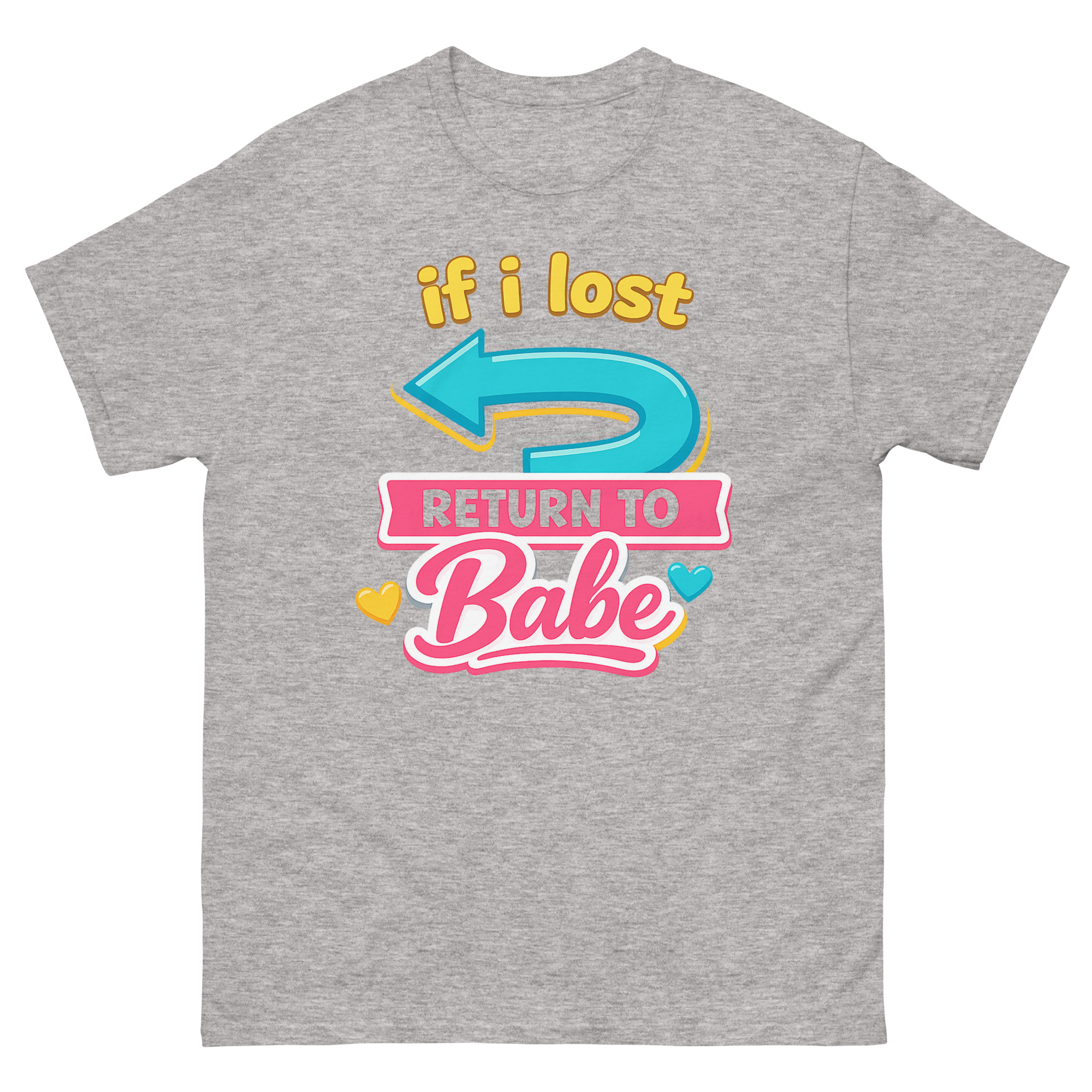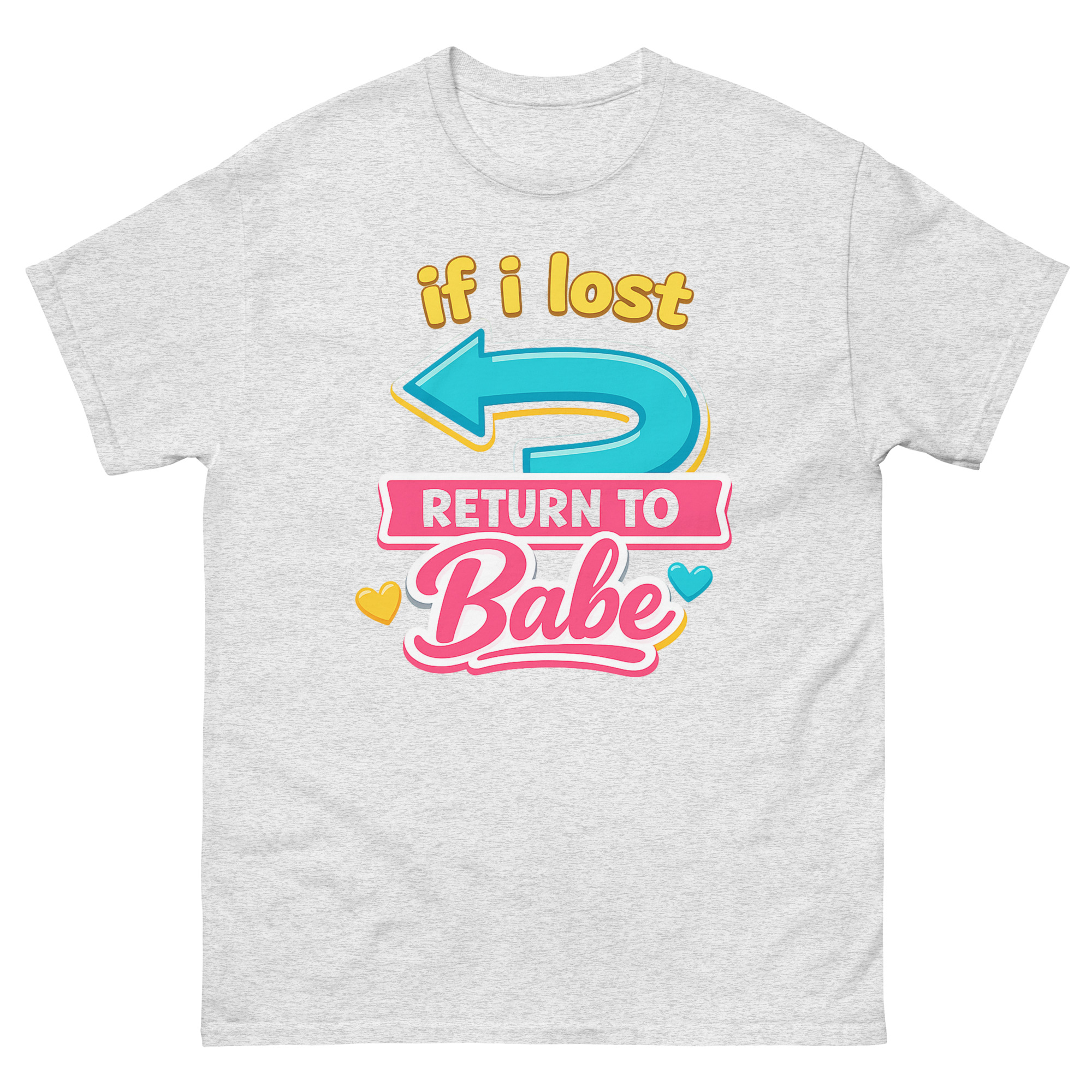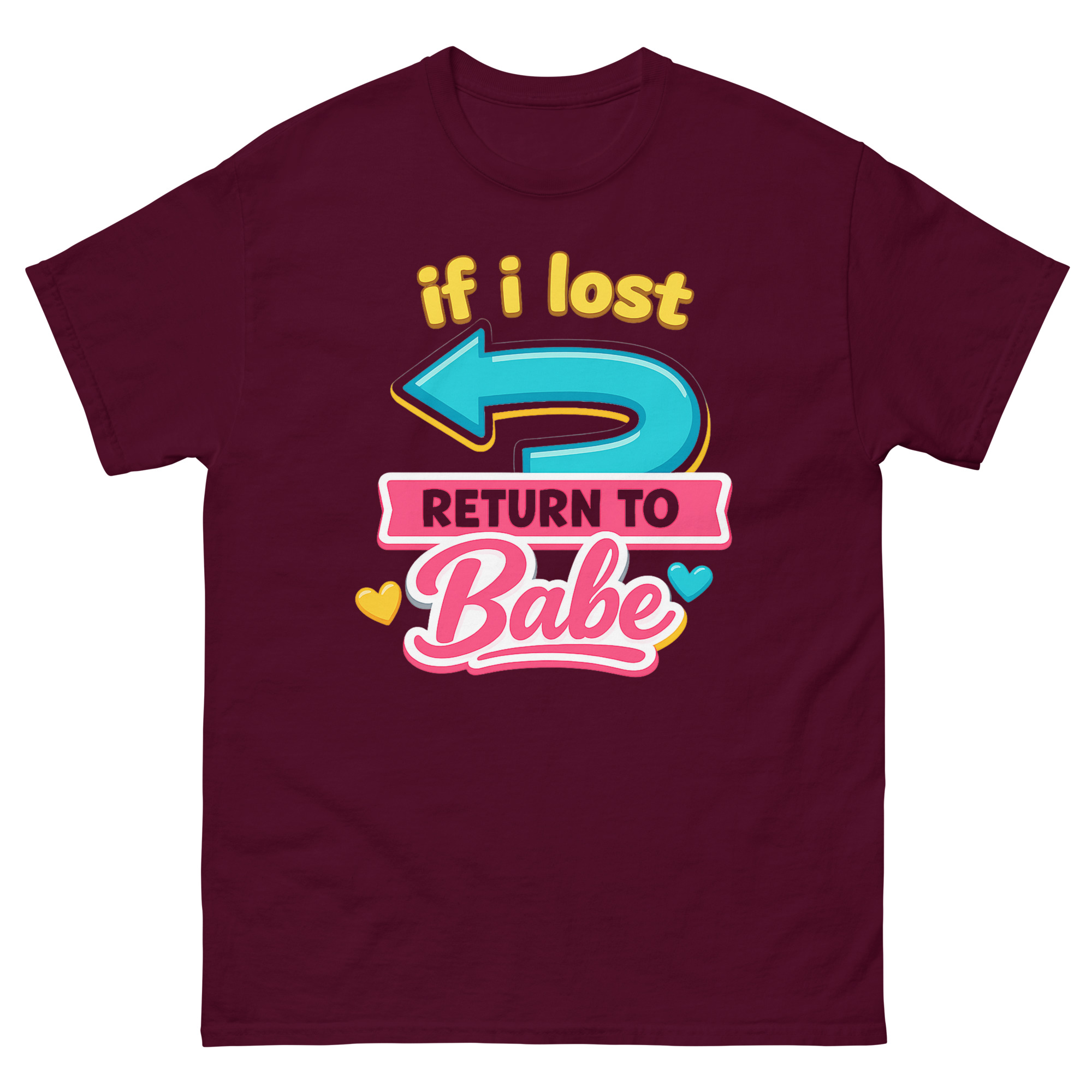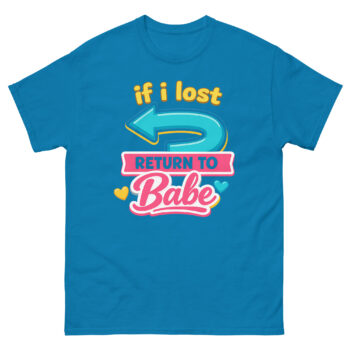 This If I Lost Return To Babe Shirt is the ultimate uniform for shared adventures. It’s perfect for matching outfits on a honeymoon, essential cruise ship passenger apparel, or standout music festival couple outfit ideas. In short, it thrives anywhere crowds gather. It sparks conversations, creates cute photos, and most of all, it physically connects you. When you wear it, you’re proudly stating, “I Am Babe,” or proudly guiding your babe back home.