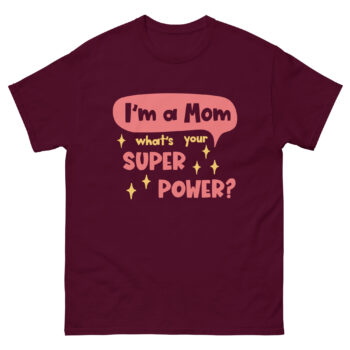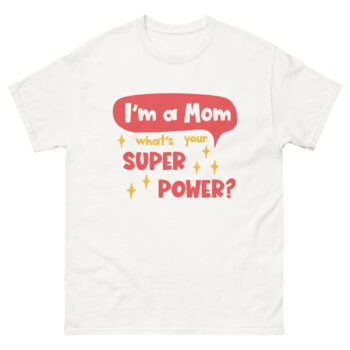 This “I’m a Mom, What’s Your Superpower?” t-shirt is a bold and playful way to celebrate motherhood. Featuring comic-style text with sparkling details, it highlights the strength, resilience, and pride of moms everywhere.