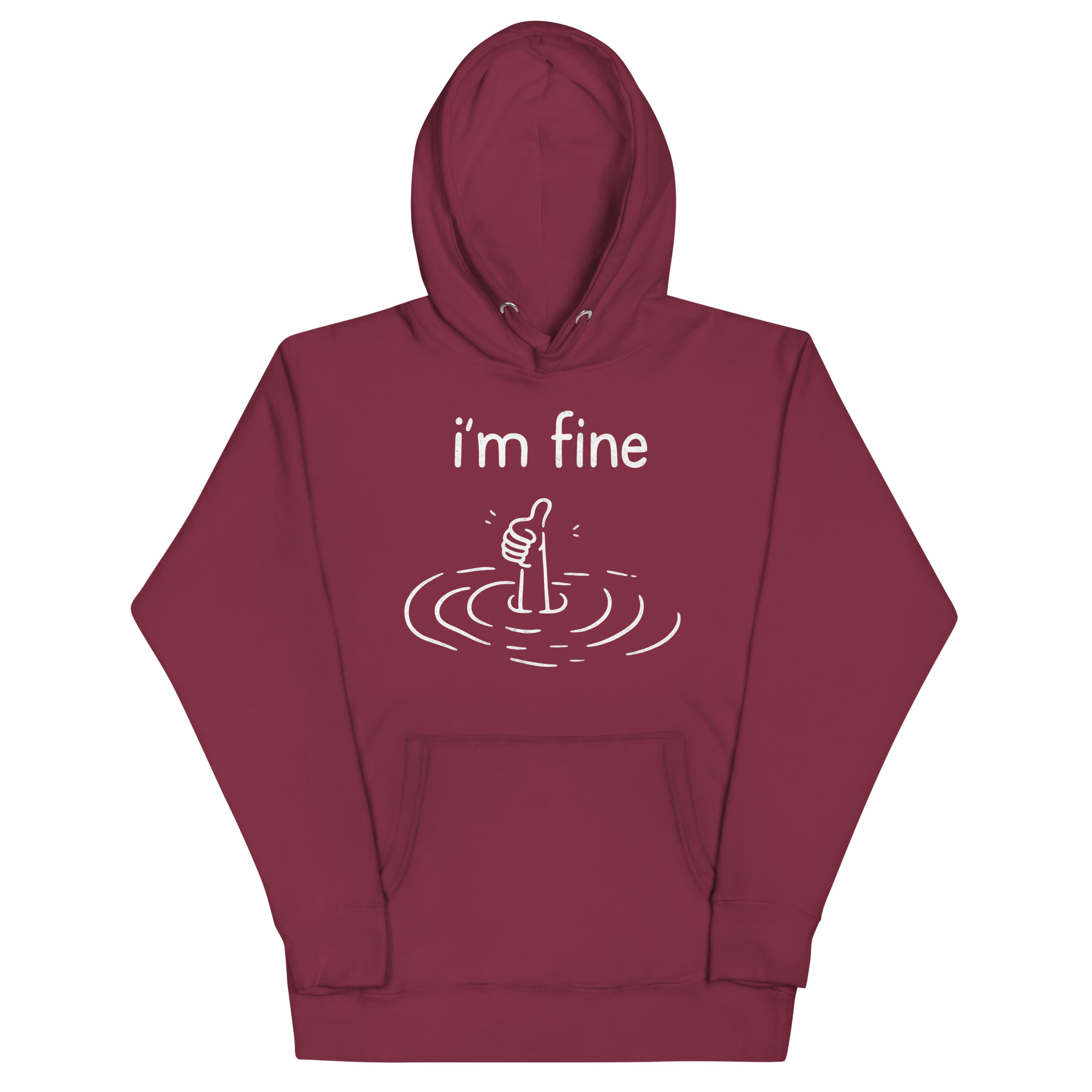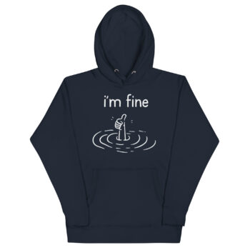 Perfectly capture that feeling of being overwhelmed while pretending everything is okay with our “I’m Fine” hoodie. This isn’t just a hoodie; it’s a mood. Featuring the hilariously relatable graphic of a sinking hand giving a thumbs-up, it’s the cool statement piece for anyone with a love for dark humor and sarcasm.