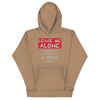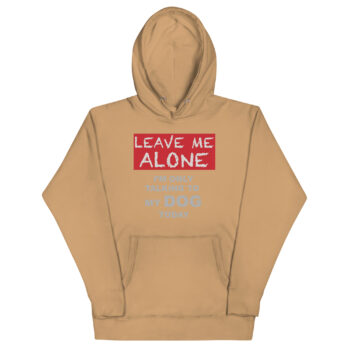 First, let’s talk about the message. “LEAVE ME ALONE. I’M ONLY TALKING TO MY DOG TODAY” isn’t just a funny phrase; it’s a story. Our designer, a proud introvert and dog mom to a goofy Golden Retriever, created this after a particularly overwhelming week. She realized that her dog was the only one who listened without judgment. Therefore, she wanted to create a design that was honest, a little bit humorous, and deeply relatable for fellow pet lovers. This hoodie is for anyone who has ever found more comfort in a wagging tail than in a long conversation.