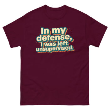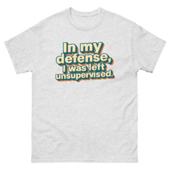 Own your playful side with our “In My Defense, I Was Left Unsupervised” T-shirt! This laugh-out-loud tee is perfect for anyone who’s ever found themselves in a bit of a pickle and needed a go-to explanation. It’s an ode to spontaneity, accidental adventures, and the charming chaos that ensues when supervision is ahem lacking.