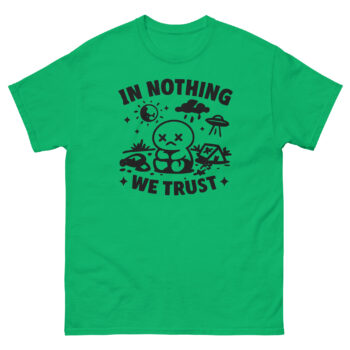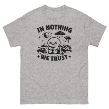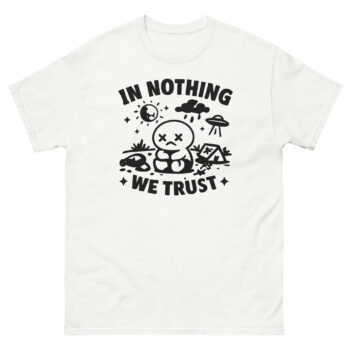 What’s left when the world feels too loud, too uncertain, or just plain absurd? You find solace in the void and maybe a little dark humor. Our In Nothing We Trust Shirt captures that exact feeling. This isn’t about anger; it’s about acceptance, wrapped in the soft blanket of cozy nihilism. Through its charmingly bleak indie game aesthetic, this design offers a quiet, witty solidarity for anyone navigating modern existential dread. Let’s explore the absurdist art and quality craftsmanship that make this tee a staple for the thoughtfully pessimistic.