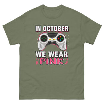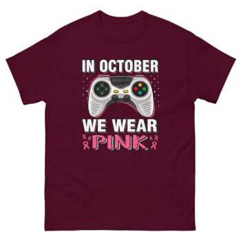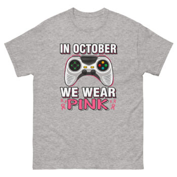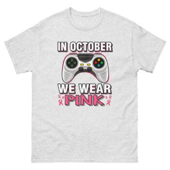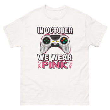 Join thousands of gamers who are choosing to wear their support with pride. Click ‘Add to Cart’ now to secure your own In October We Wear Pink T Shirt and become a walking beacon of awareness and hope.