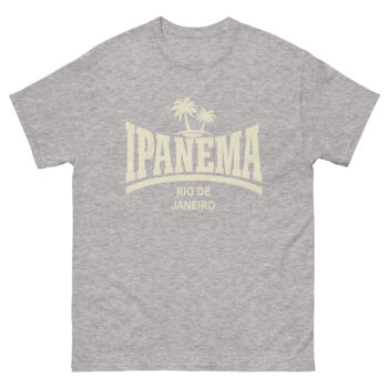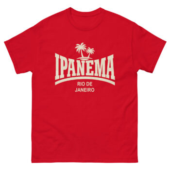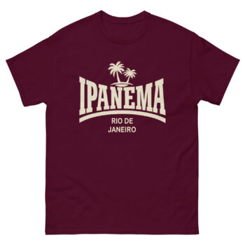 Ultimately, this clean and symmetrical design creates a powerful yet sophisticated look. It’s the ideal Ipanema beach souvenir shirt for world travelers who appreciate urban elegance.
