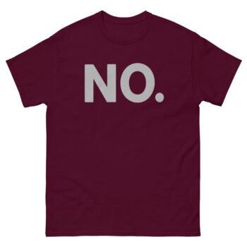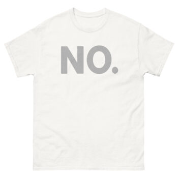 Firstly, the design features a large, bold “NO.” in a clean, gray font. Placed squarely on the chest, it makes its point clearly and effectively. Because the design is minimalist, it pairs easily with jeans, shorts, or even under a jacket for a subtle hint of humor.
