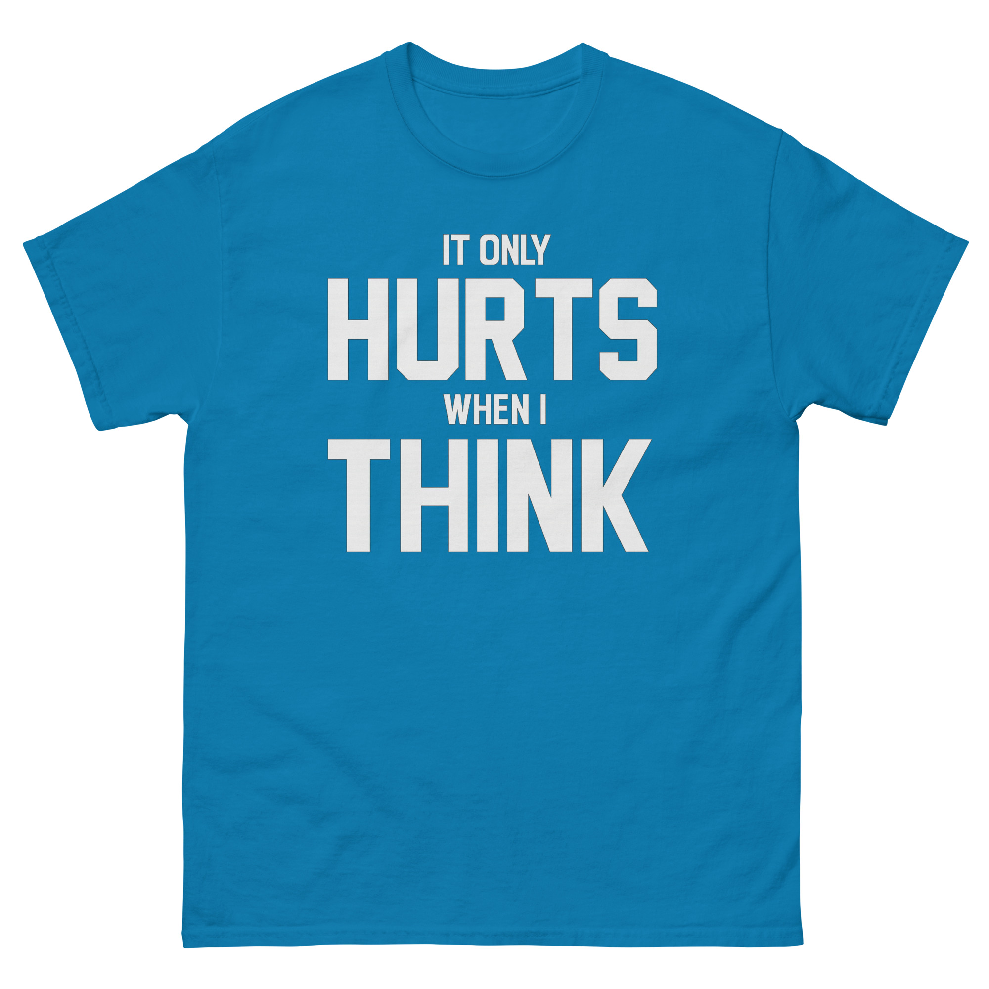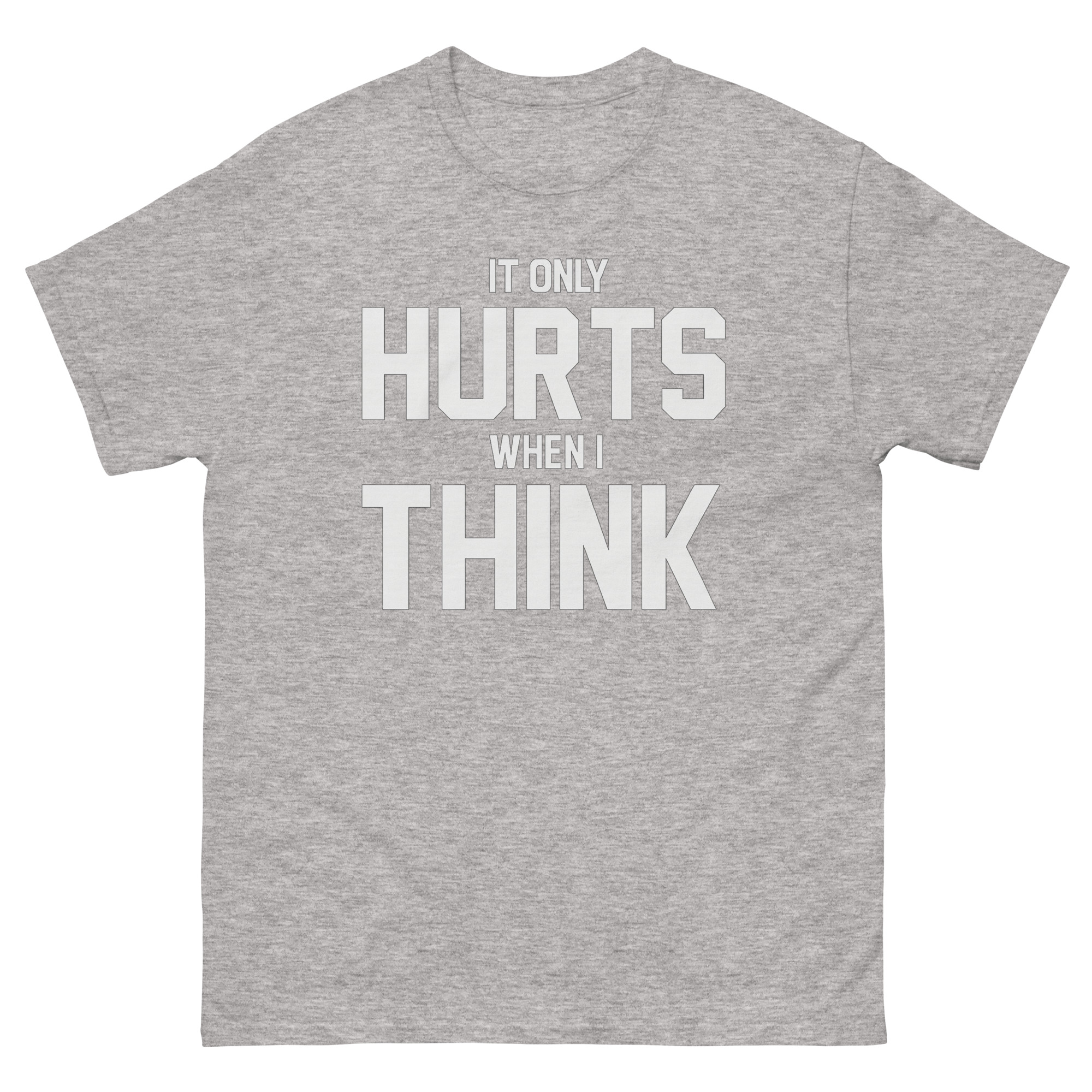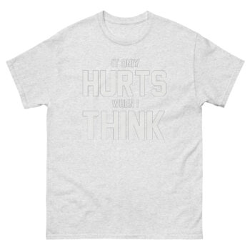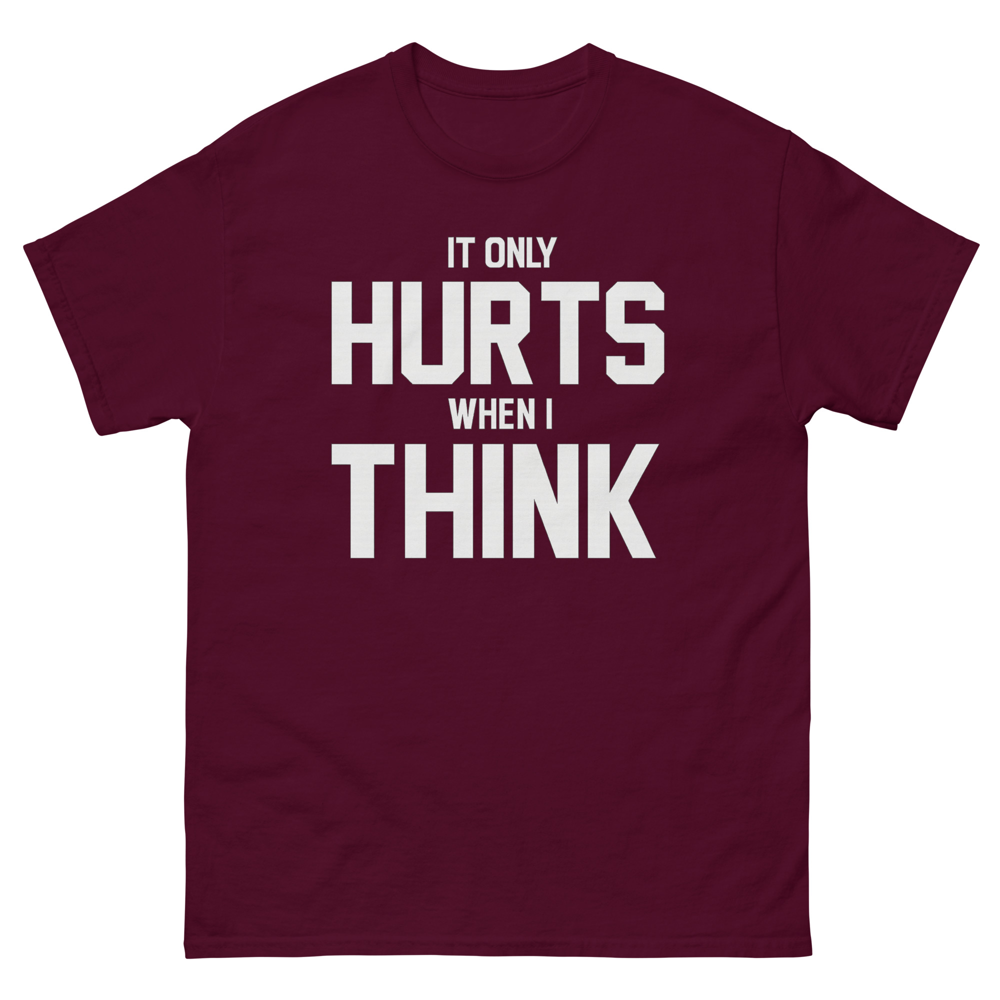 Starts Conversations: It Only Hurts When I Think Shirt It’s more than a shirt; it’s a badge of shared experience. Whether at the office or campus, it connects you with fellow thinkers.