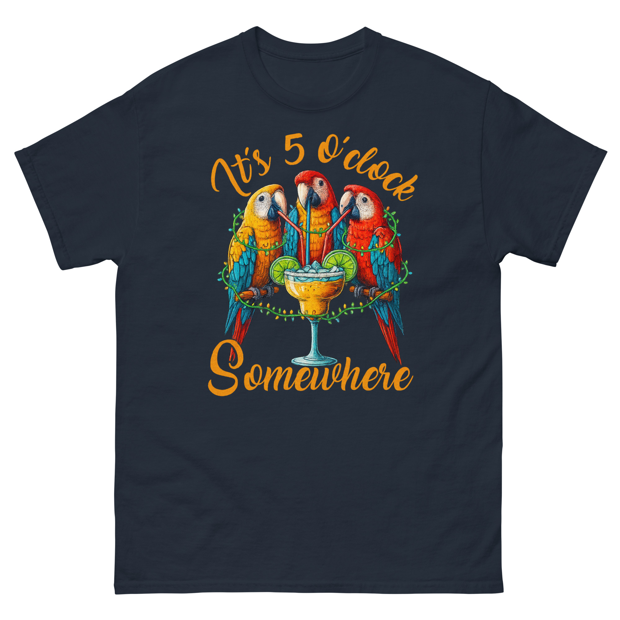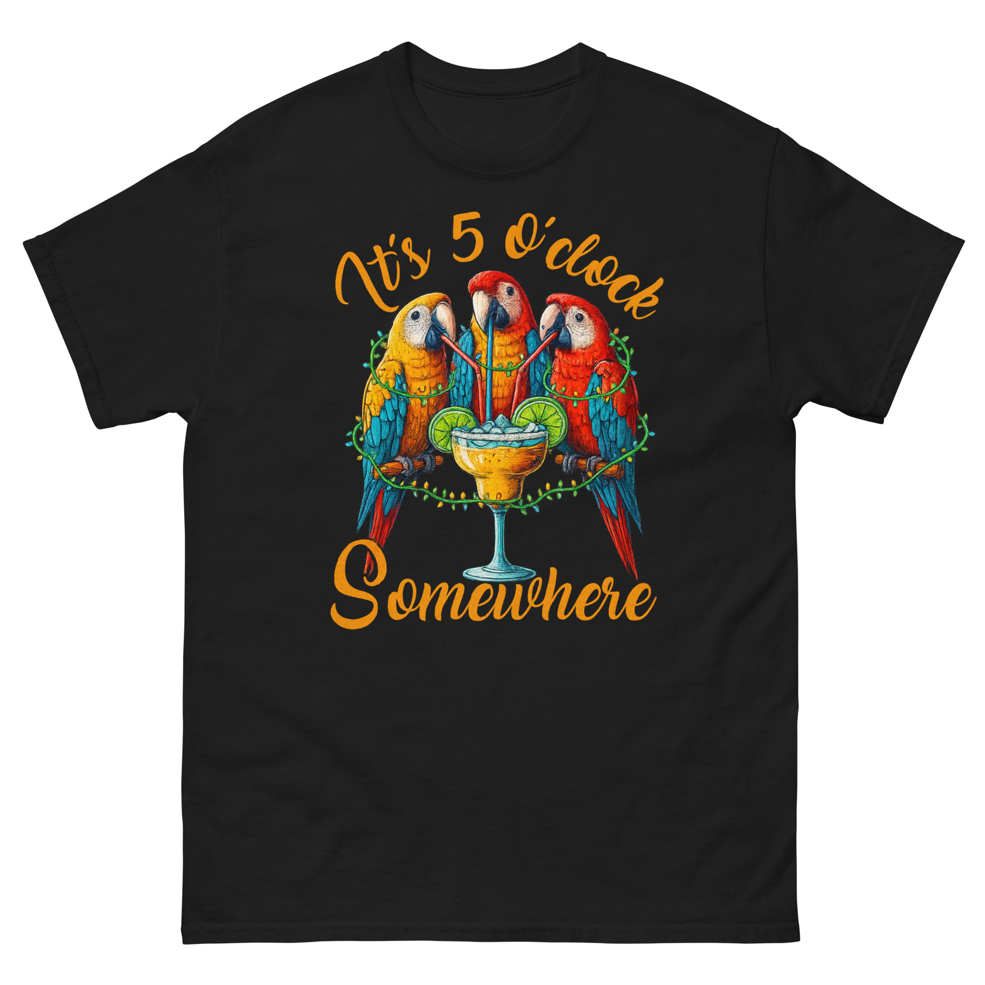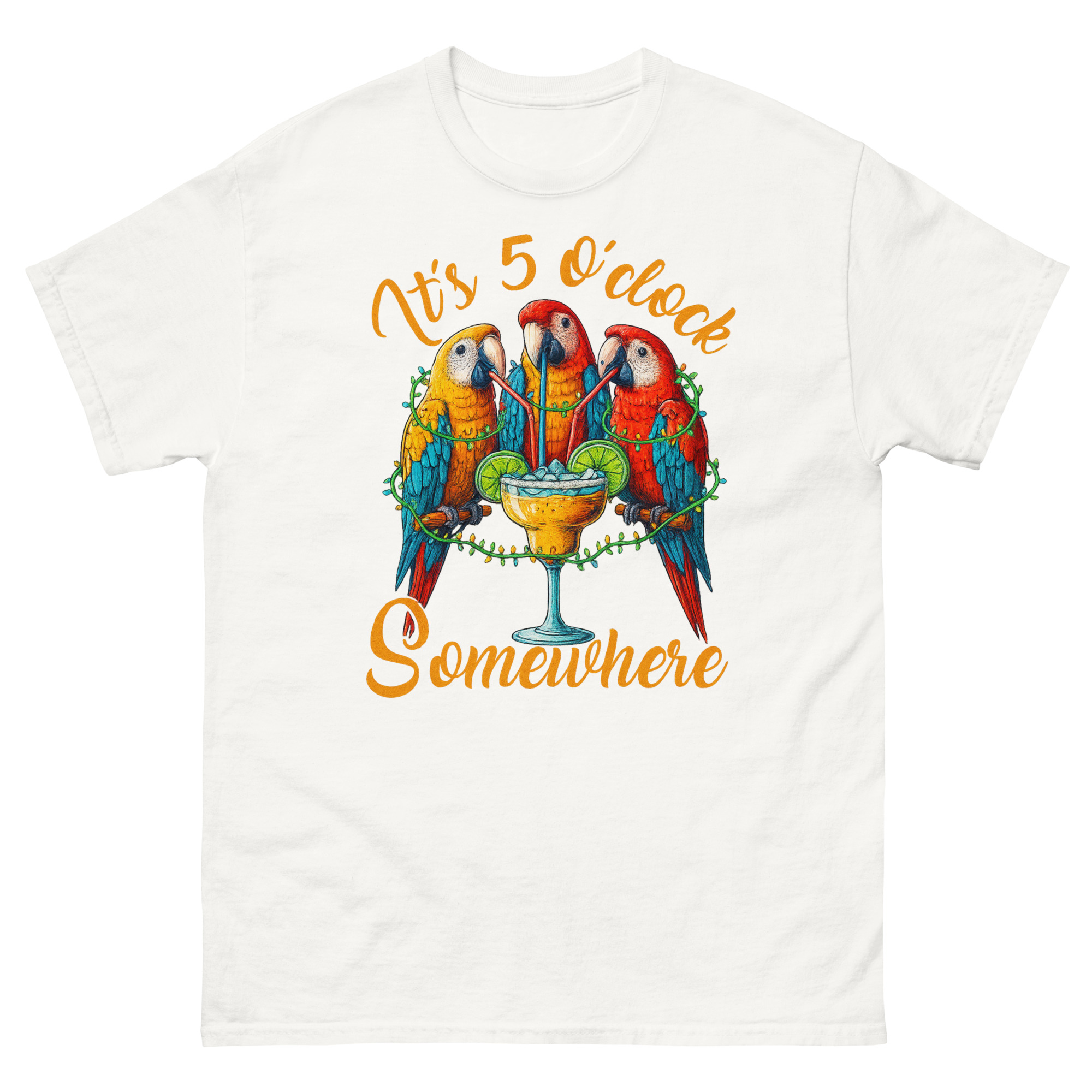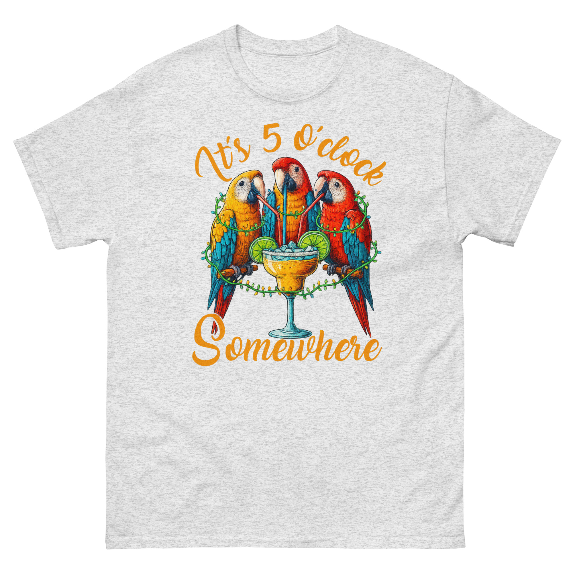It’s 5 O’Clock Somewhere Shirt: Tropical Parrots & Margarita Graphic Tee