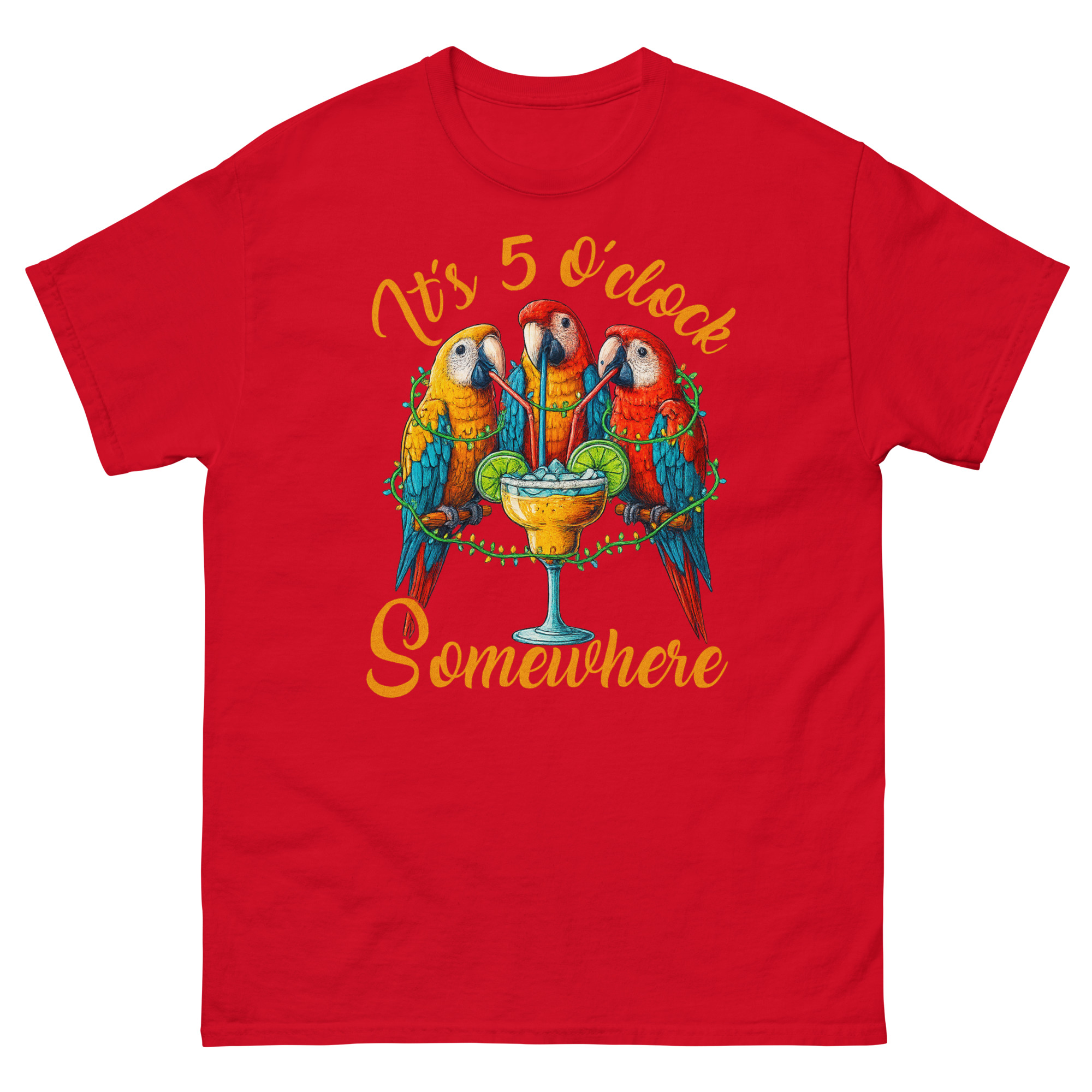 Does the clock ever feel like it’s working against you? What if you could hit pause on the daily grind and step into a sunnier state of mind, anytime you want? This is the exact feeling we captured in the “It’s 5 O’Clock Somewhere” Shirt. More than just a graphic tee, it’s your wearable permission slip to embrace the Jimmy Buffett style philosophy of relaxed joy. Featuring vibrant macaws sipping cocktails, this design is a direct line to tropical dreams and spontaneous Happy Hour. Let’s explore why this shirt is the ultimate symbol for beach dreamers, retirement planners, and anyone who believes paradise is a mindset.