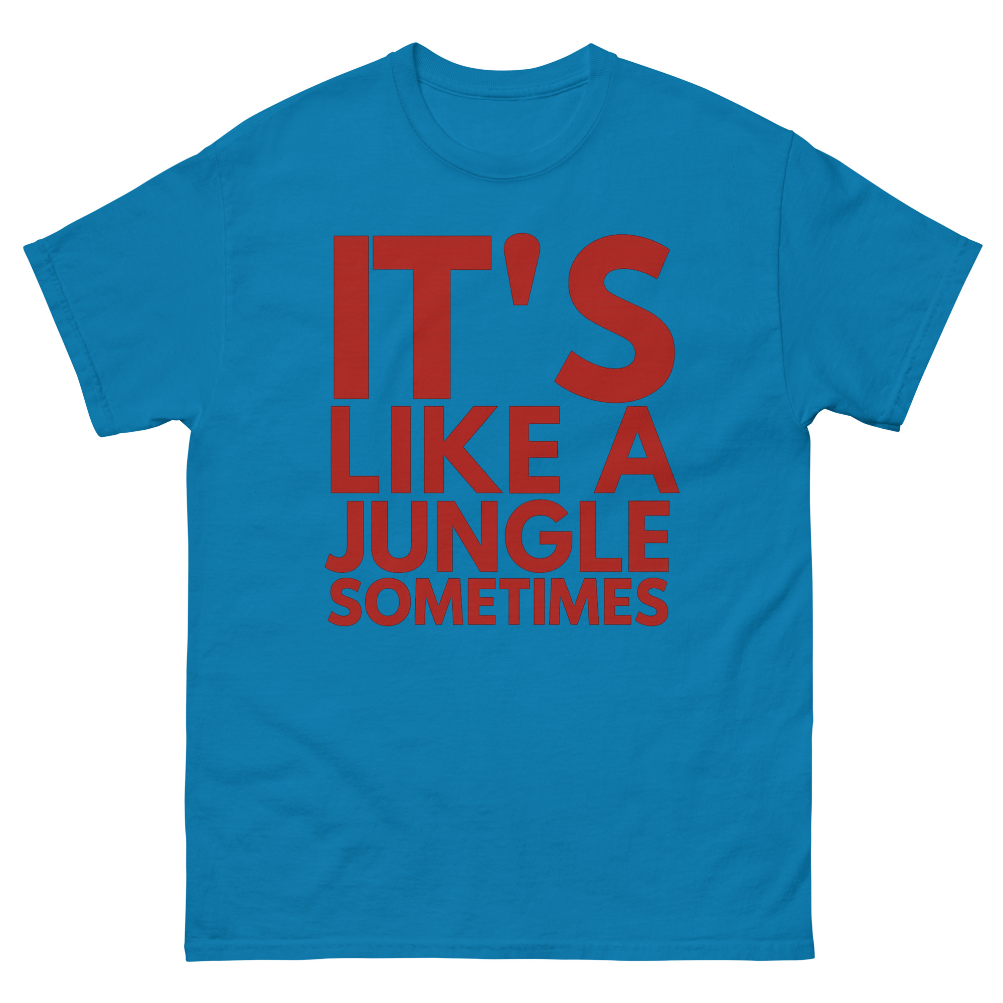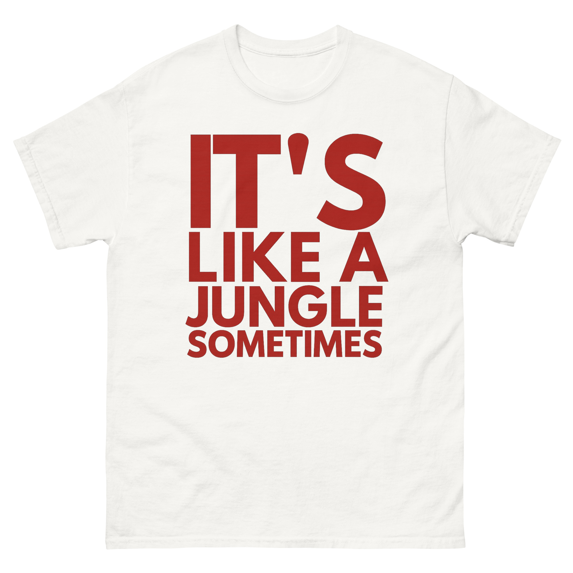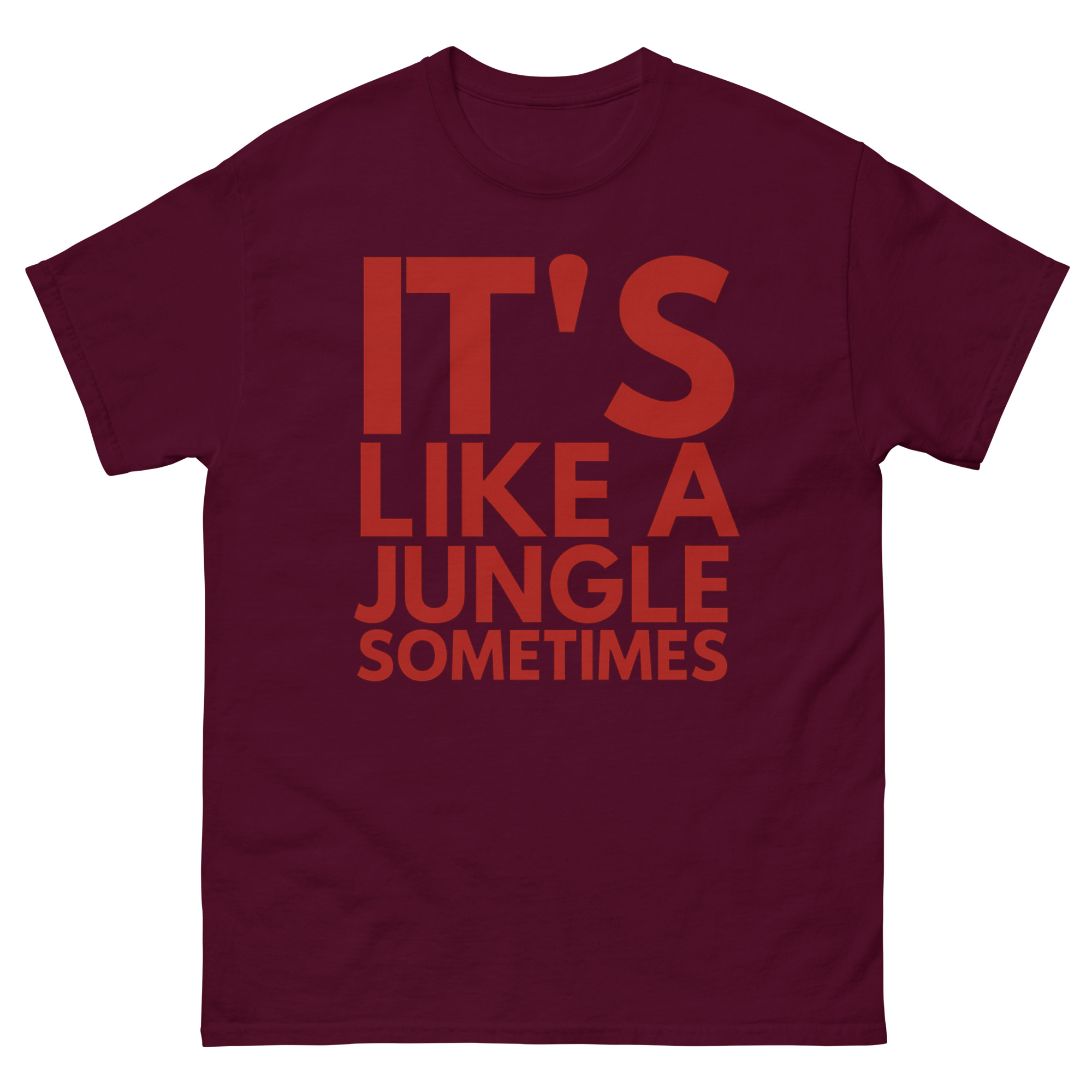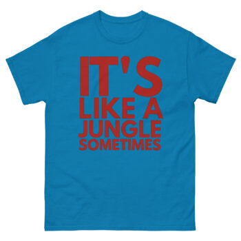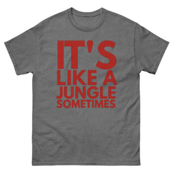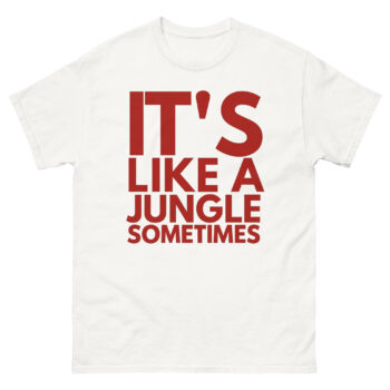 More than just a graphic tee, this It’s Like A Jungle Sometimes t shirt is a wearable tribute to a cultural landmark. It’s for those who appreciate design with meaning and clothing built to last. Don’t just remember the lyric, wear it. Get your It’s Like A Jungle Sometimes t shirt today and represent your roots with understated confidence.