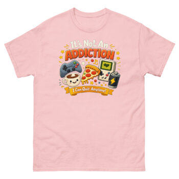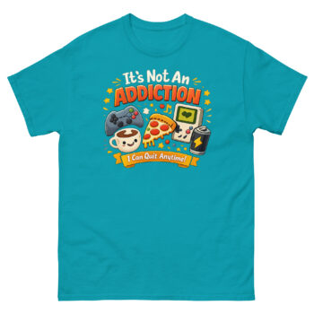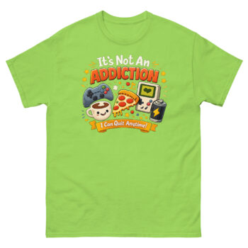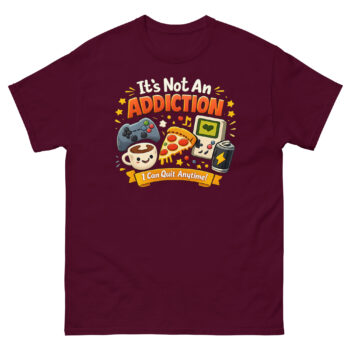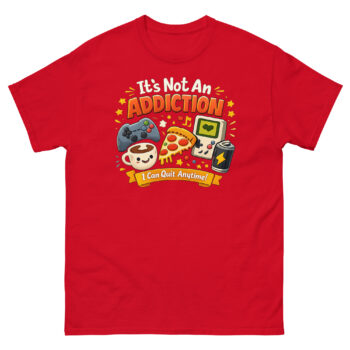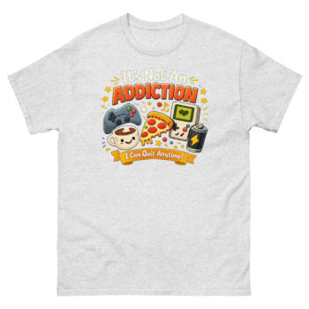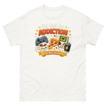 Ever defend your weekend binge of video games, pizza, and caffeine as a “perfectly balanced lifestyle”? Welcome to the club. Our It’s Not An Addiction Shirt is the official, sarcastically humble uniform. This design doesn’t judge your late night quest to level up; it celebrates the iconic gamer’s loop with vibrant, sticker-bomb style art. For streamers, retro gaming fans, and anyone powered by controllers and coffee, this tee is a badge of honor built with serious quality. Let’s glitch into the details.