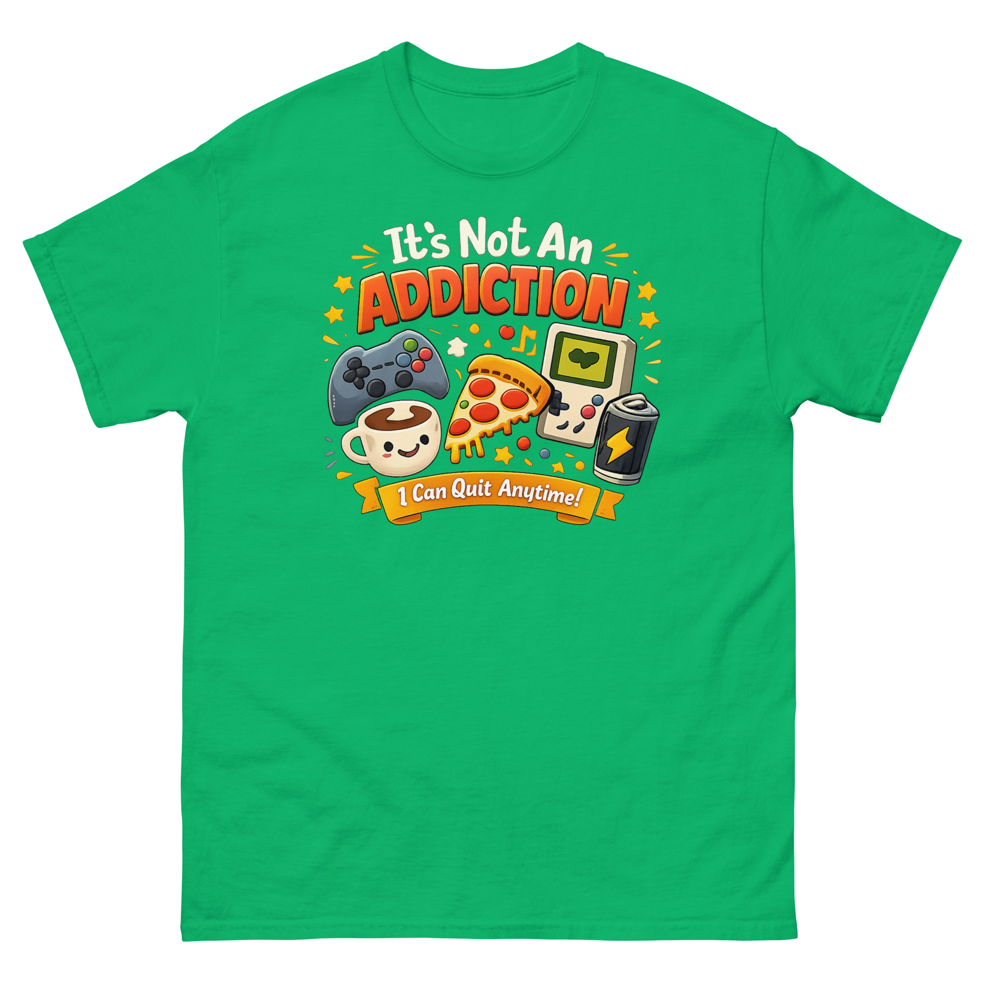 Why explain your passion when your shirt can do it with humor and art? The It’s Not An Addiction Shirt is more than apparel; it’s an identity. It connects you to a global community that speaks the language of level ups, late nights, and perfectly timed pizza.