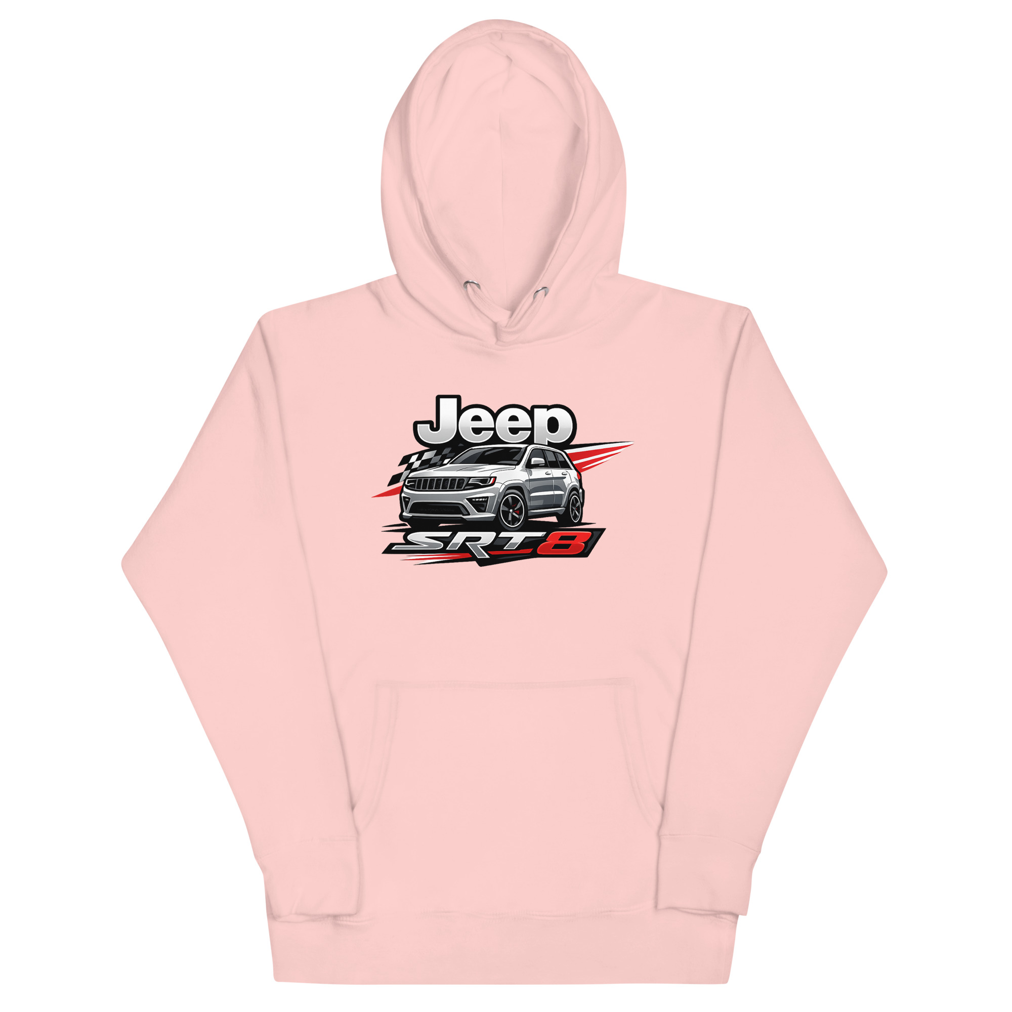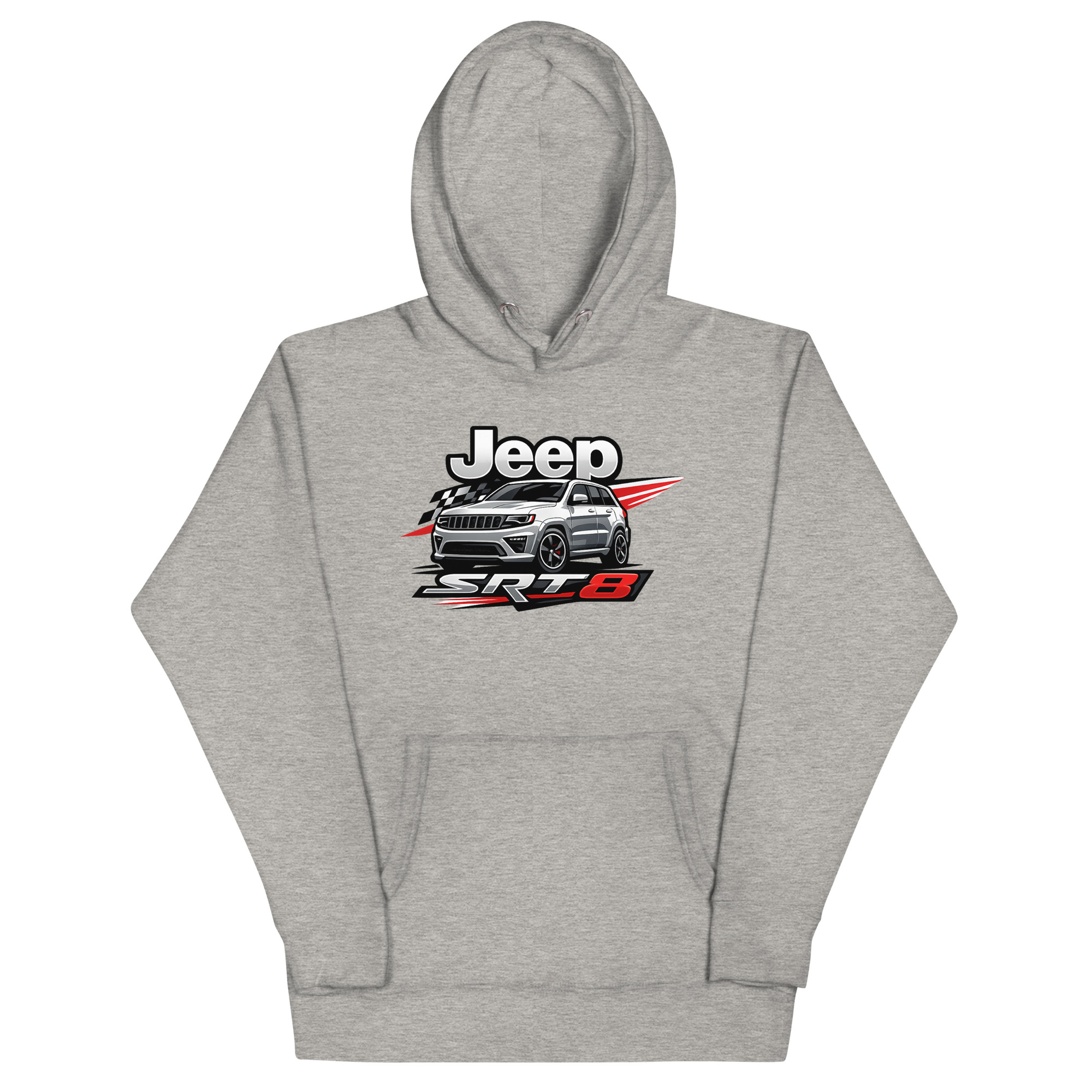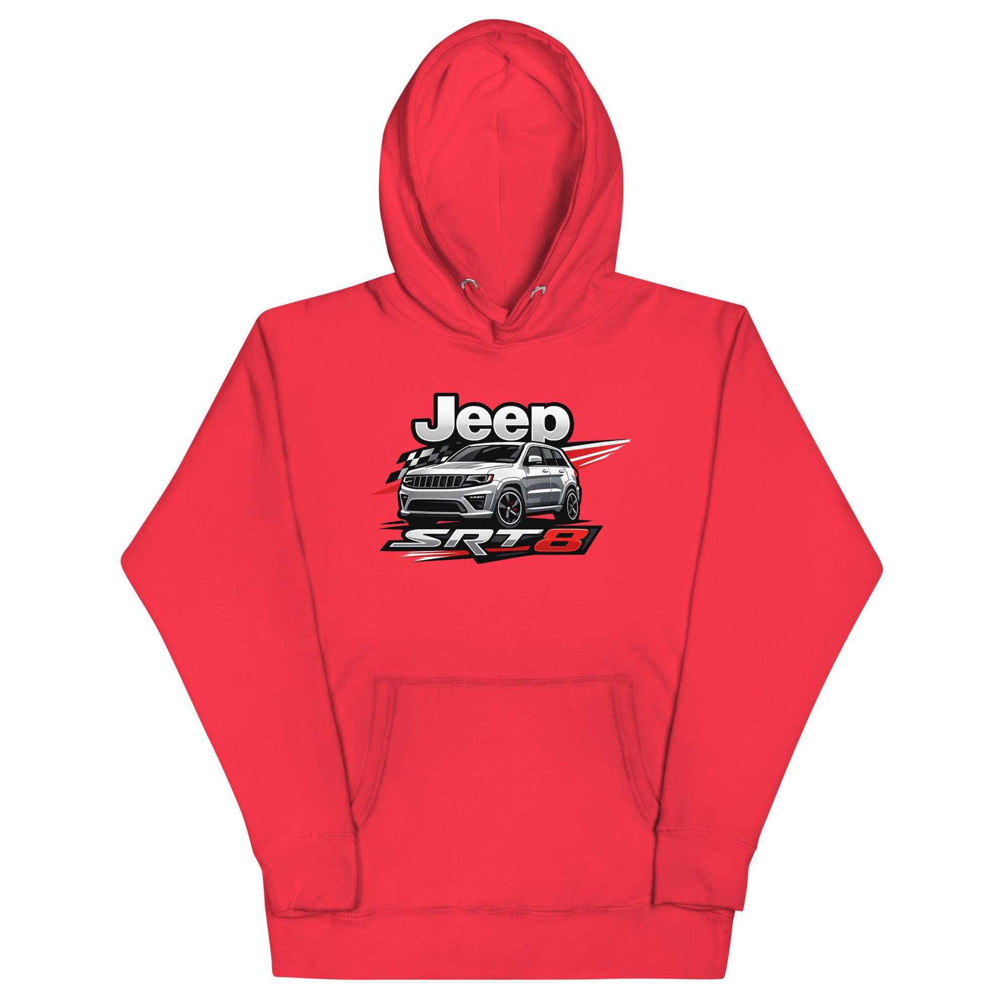 This is a premium hoodie featuring a dynamic, racing-inspired graphic of a Jeep Grand Cherokee SRT8. This specific Jeep SRT8 hoodie stands out by focusing on the vehicle’s high-performance muscle, not just its off-road capability. It’s crafted for SRT8 owners, Mopar performance fans, and anyone who appreciates the powerful blend of luxury and raw horsepower.