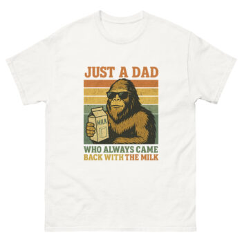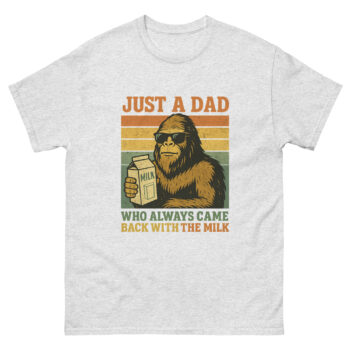 Let’s address the elephant—or rather, the sasquatch—in the room. We all know the joke: the dad who left for a carton of milk and never came back. But what about the heroes? The dads who braved the wilderness of the grocery store, faced down long lines, and triumphantly returned with the goods? This shirt is for them. The Just a Dad Who Came Back With the Milk – Funny Bigfoot Shirt isn’t just a parody; it’s a redemption arc in tee form. It reclaims the narrative for the reliable, the present, and the gloriously hilarious dads among us.