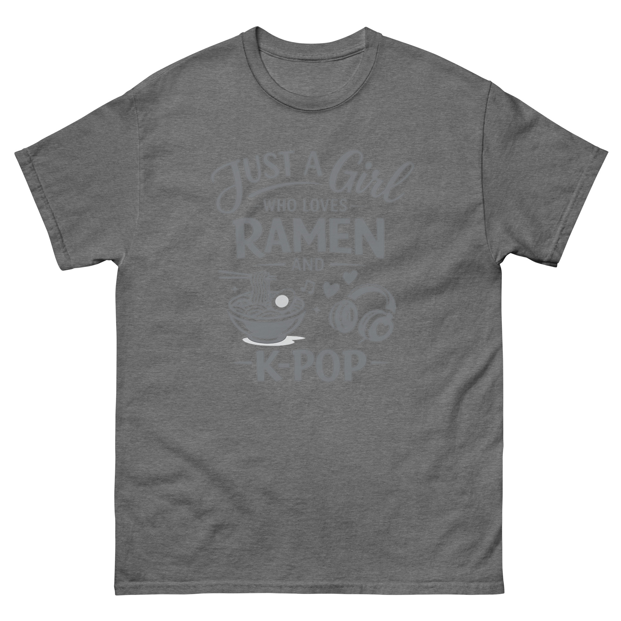Just A Girl Who Loves Ramen and K-pop T Shirt Specifications