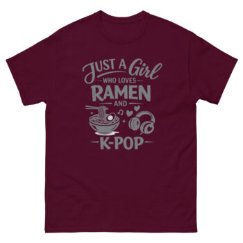 Showcase your unique combo of tastes with this sleek, comfortable tee. The Just A Girl Who Loves Ramen and K-pop T Shirt is the perfect choice for any Hallyu fan looking for fandom fashion that’s both cool and personal. Whether it’s a treat for yourself or a top-tier Gen Z Korean fandom gift, it celebrates the joy of comfort food and great music. Choose your size today and wear your passions with understated style.