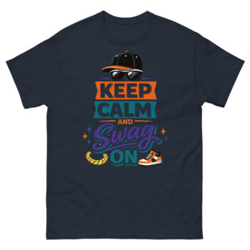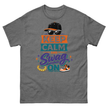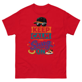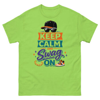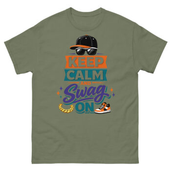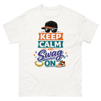 Ready to elevate your everyday style with a dose of confident energy? The Keep Calm and Swag On T Shirt is your go-to piece of urban style statement wear. This fashionable graphic apparel is perfect for casual outings, urban music festivals, or just rocking a confident look. It makes a fantastic gift for teens or a confidence building shirt for men into the urban aesthetic. Don’t wait to add this fresh tee to your rotation, click ‘Add to Cart’ now to get your bold streetwear shirt delivered quickly.