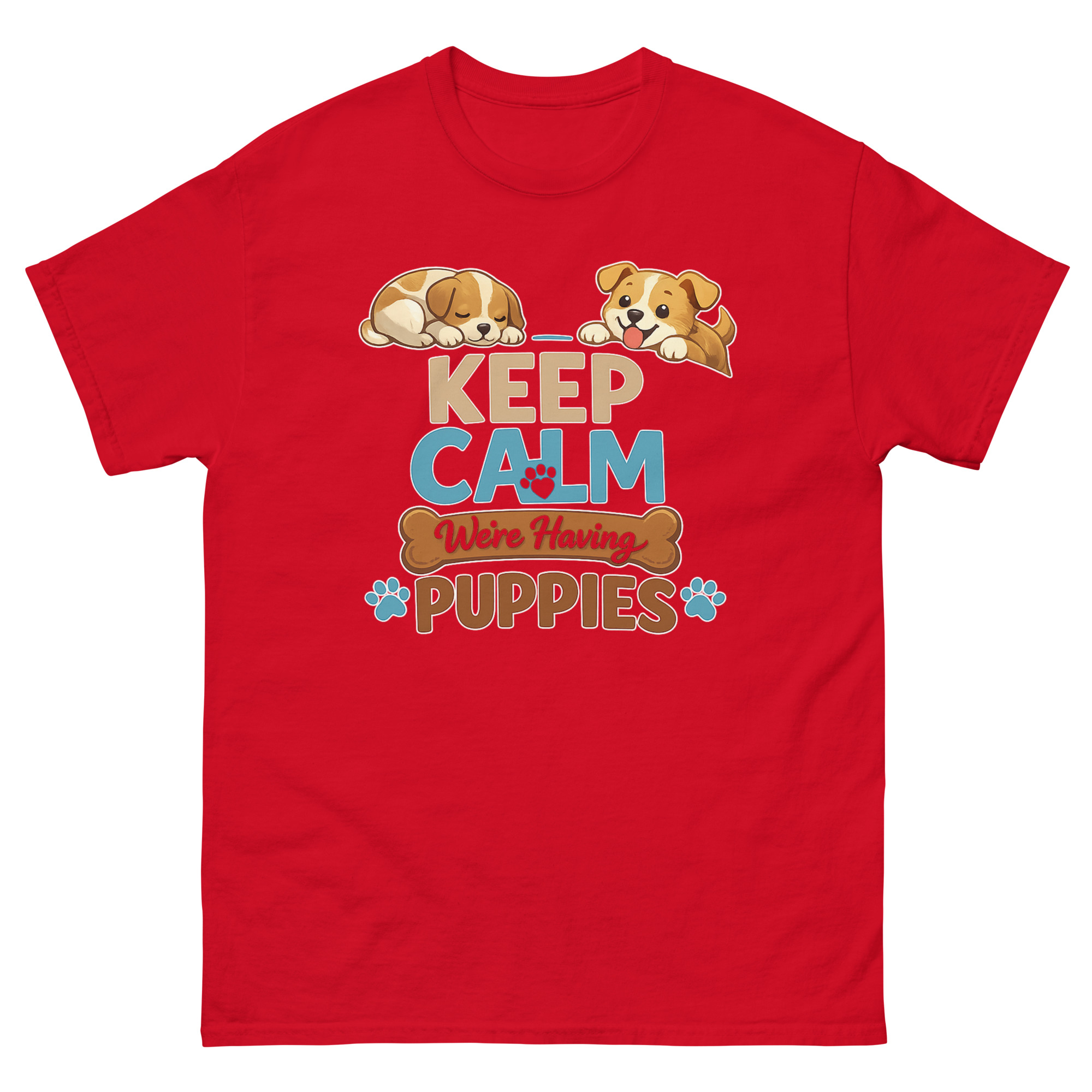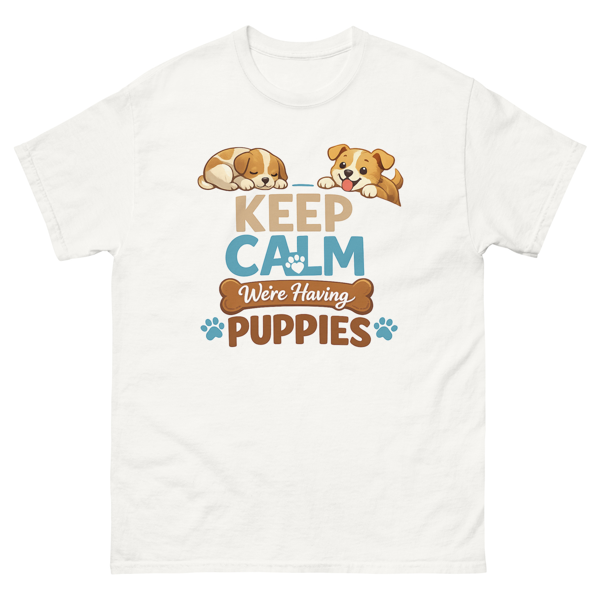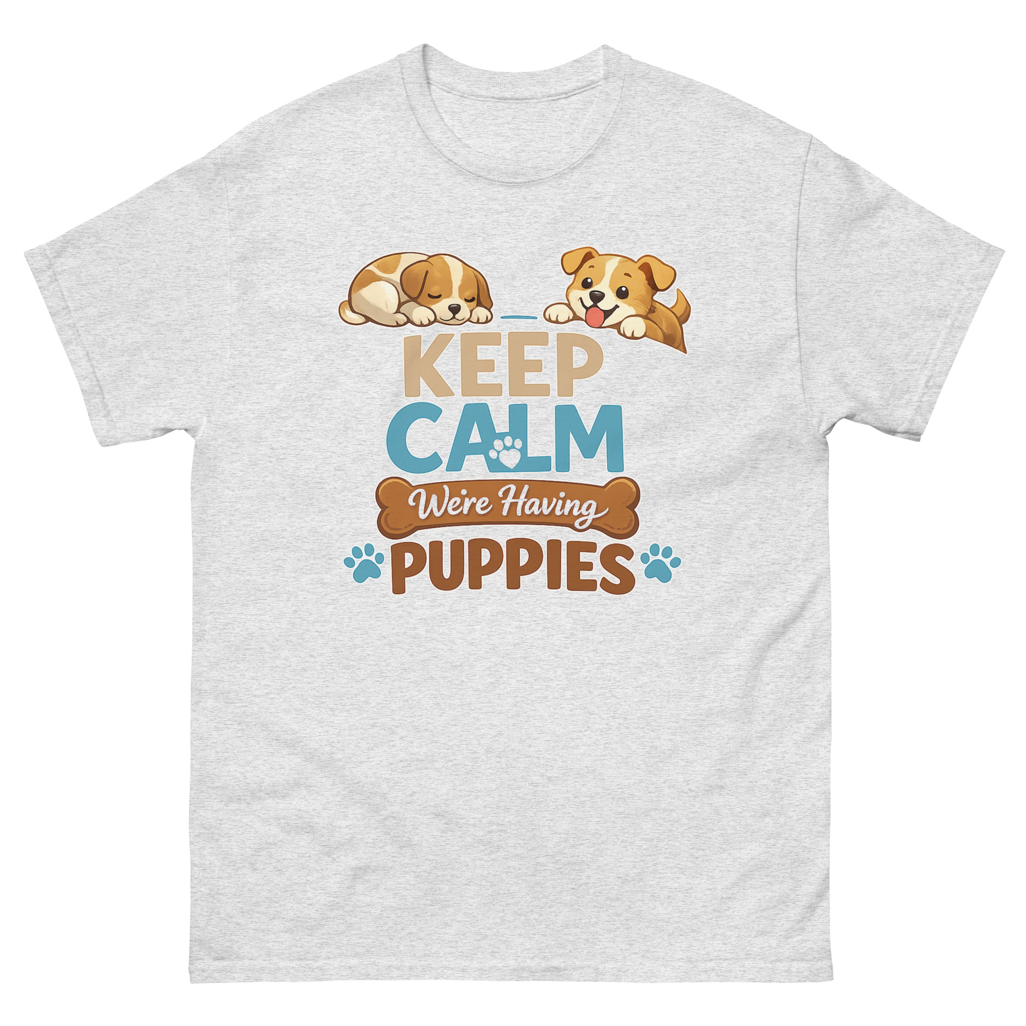 - Print & Safety: Keep Calm We’re Having Puppies T Shirt Made with Direct-to-Garment (DTG) printing and Oeko-Tex™ certified, water-based inks. This ensures vibrant, crack-resistant colors that are safe for skin.