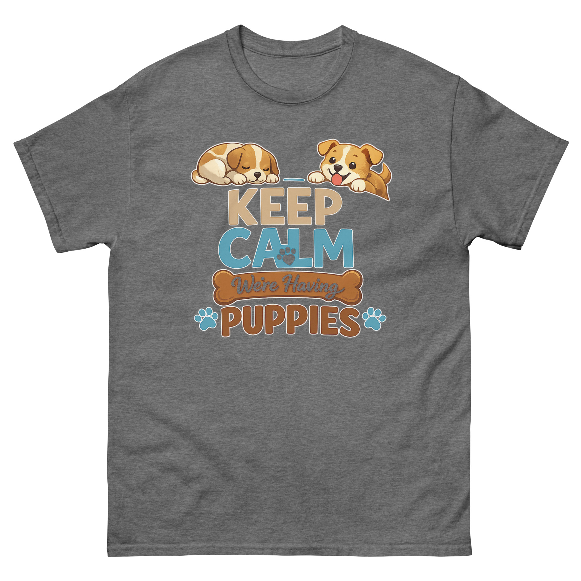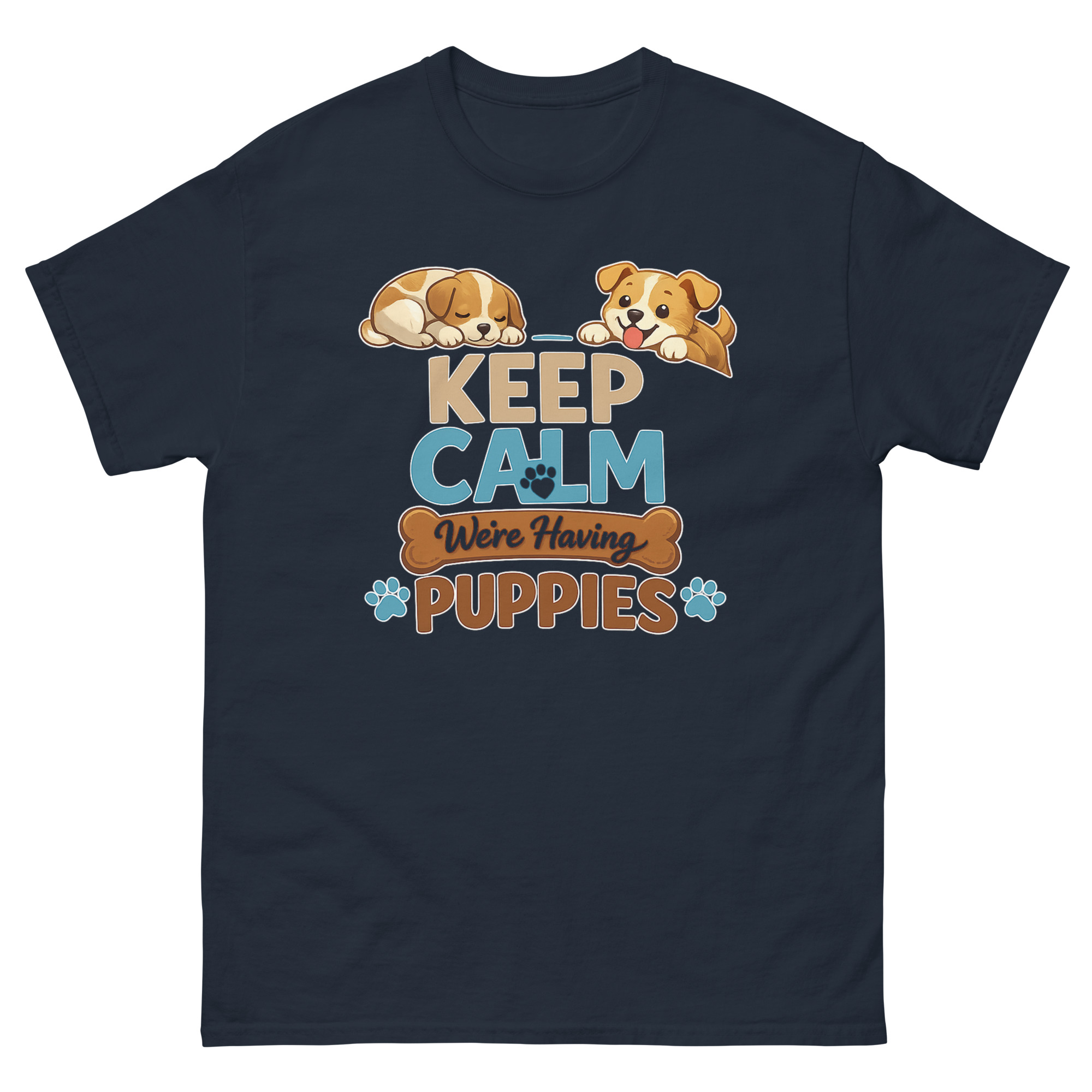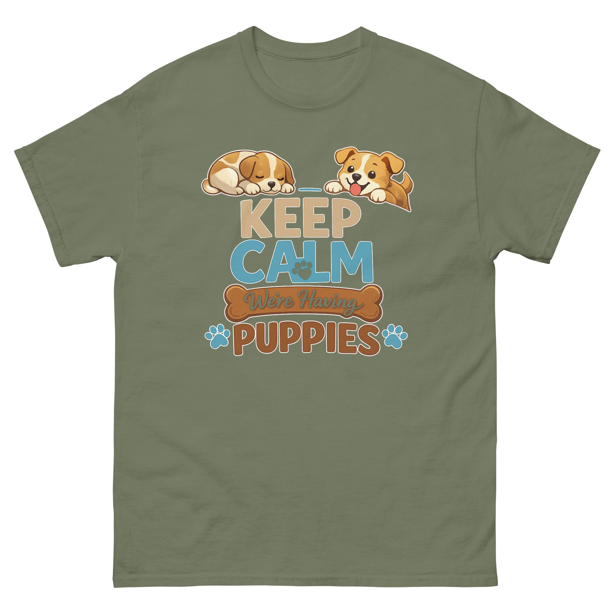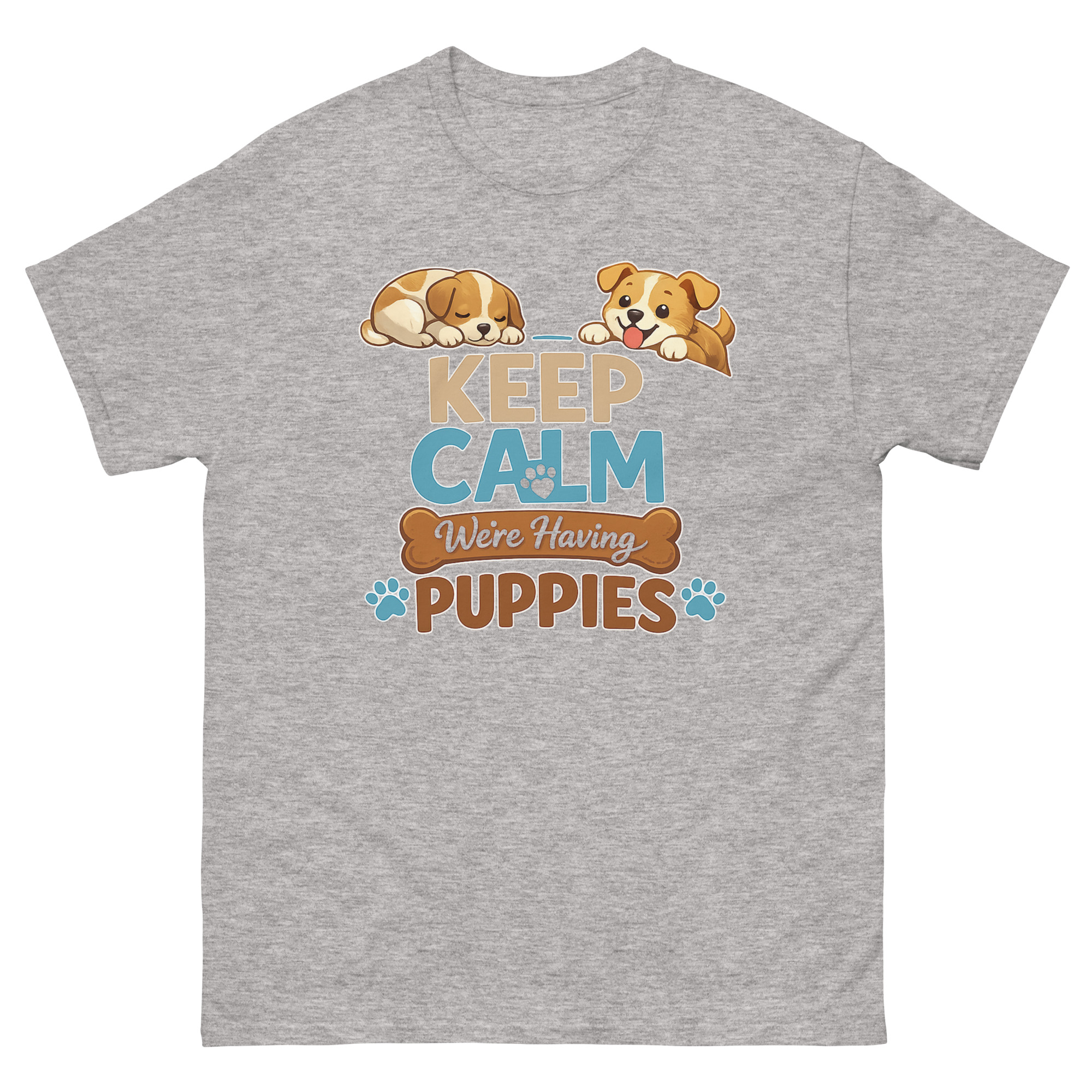 - Print & Safety: Keep Calm We’re Having Puppies T Shirt Made with Direct-to-Garment (DTG) printing and Oeko-Tex™ certified, water-based inks. This ensures vibrant, crack-resistant colors that are safe for skin.