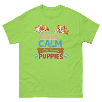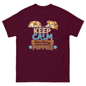 We created Keep Calm We’re Having Puppies T Shirt design for the joyful chaos that comes with a new litter. It’s for the person who is both excited and bracing for the adventure of raising puppies, whether as a breeder, foster, or a family adopting a whole bunch at once.