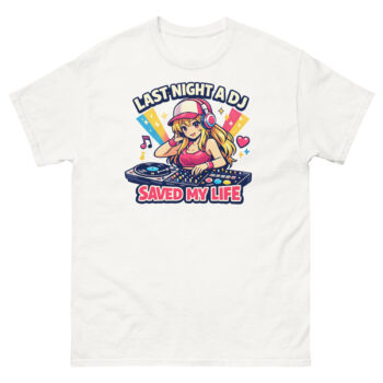 Ever feel like music literally rescues your day? That’s the magic we’re celebrating with our Last Night a DJ Saved My Life Shirt. This isn’t just a retro disco reference; it’s a vibrant manifesto for anyone who finds pure joy on the dance floor. Specifically, we’ve reimagined that classic anthem through a lens of Kawaii energy and Manga style artwork. Consequently, this tee becomes a wearable burst of happiness, perfect for fans of EDM, house music, and the universal truth that music heals.