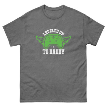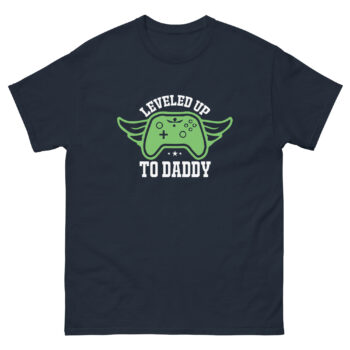 Celebrate fatherhood gamer-style with the “Leveled Up to Daddy” t-shirt. Perfect for new dads who love gaming or fathers who enjoy multiplayer bonding with their kids. Makes a thoughtful gift for Father’s Day, baby announcements, or gaming dads.