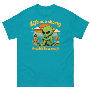 Don’t just stream the classics, wear the feeling. Embrace the vibe and add this iconic Life as a Shorty Shouldn’t Be So Rough Shirt to your collection today. Because everyone, no matter their size or planet, deserves a cool tee that gets it.