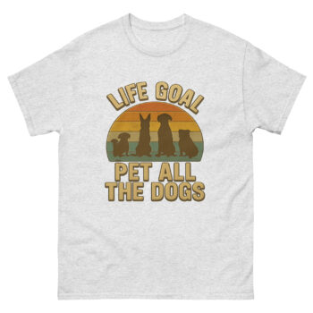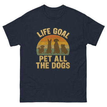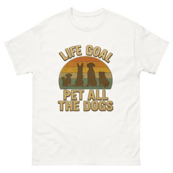 Let’s face it—your life’s true ambition isn’t climbing the corporate ladder. It’s petting every dog you meet. This retro-inspired “Life Goal: Pet All The Dogs” tee isn’t just apparel—it’s a wearable manifesto for anyone who’s ever crossed the street just to ask, “Can I say hi to your dog?”