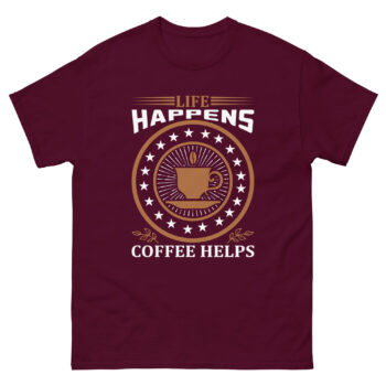 If you’ve been searching for the perfect coffee humor t-shirt, your hunt is over. The Life Happens Coffee Helps T-Shirt is more than just apparel—it’s a declaration of survival for every coffee lover.