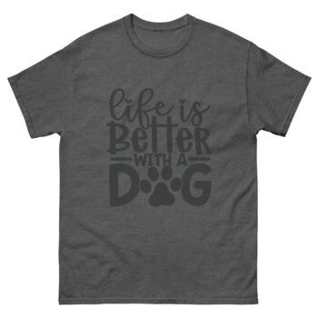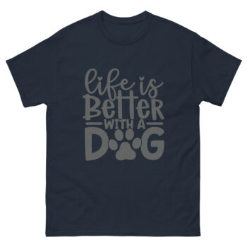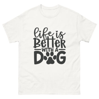 This shirt design – “Life is Better with a Dog” – is a heartwarming and widely appealing message for dog lovers.
