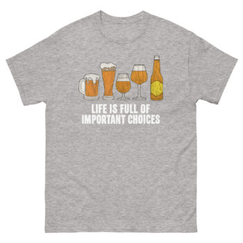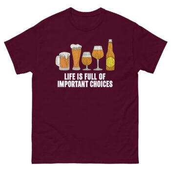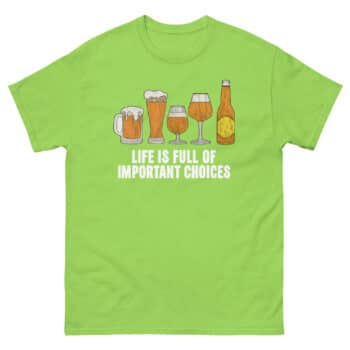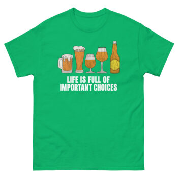 Your wardrobe deserves a piece that combines laughter, quality, and passion. Don’t just choose a beer; choose the tee that celebrates the journey. Click ‘Add to Cart’ now to secure your Life Is Full of Important Choices Beer T Shirt, the definitive craft beer lover gift idea for others, or the perfect treat for yourself. Because when it comes to expressing your love for hops, stout, pilsner, and the perfect growler fill, this is one important choice you’ll be thrilled you made.