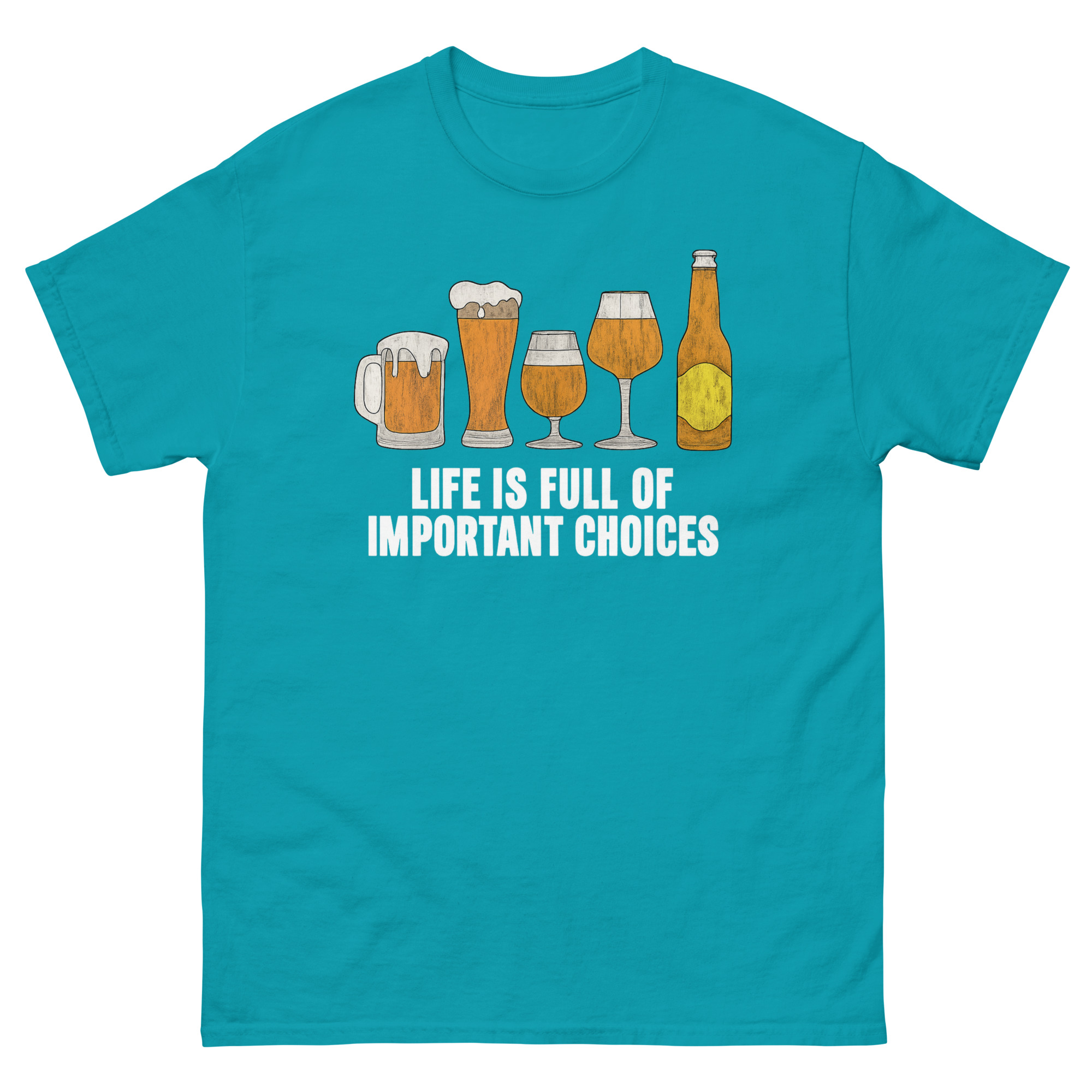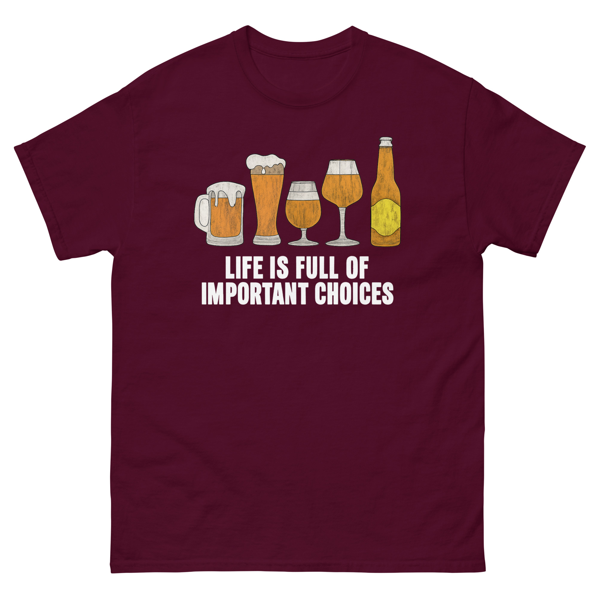 Life Is Full of Important Choices Beer T Shirt –Â A Witty Guide to Glassware & Life’s Big ChoicesÂ