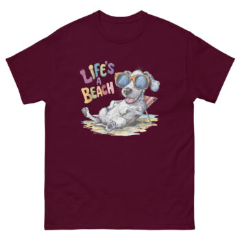 Beach, please! This adorable “Life’s a Beach” t-shirt stars a happy-go-lucky pup lounging in a chair, rocking big sunglasses, and soaking up some serious summer vibes. It’s a paw-fect pick for dog lovers who like to kick back in style.