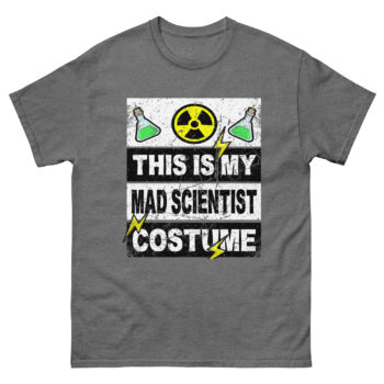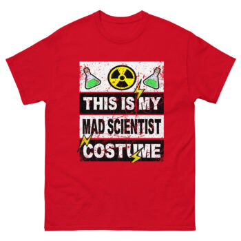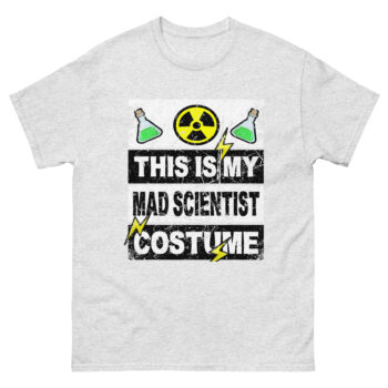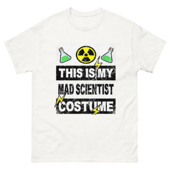 Step into character with this Mad Scientist Shirt featuring the bold phrase “This Is My Mad Scientist Costume” with beakers, radiation sign, and lightning bolts. Perfect for Halloween parties, science fairs, classroom fun, or cosplay events. This funny science tee makes a great gift for chemists, physics fans, teachers, or anyone who loves a geeky twist.